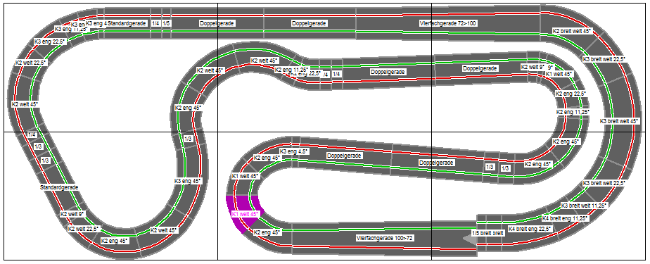 So ganz glücklich bin ich damit noch nicht. Ich wollte größere Radien, was zum Teil auch gelungen ist. Die Kurve links unten ist allerdings wieder recht eng.