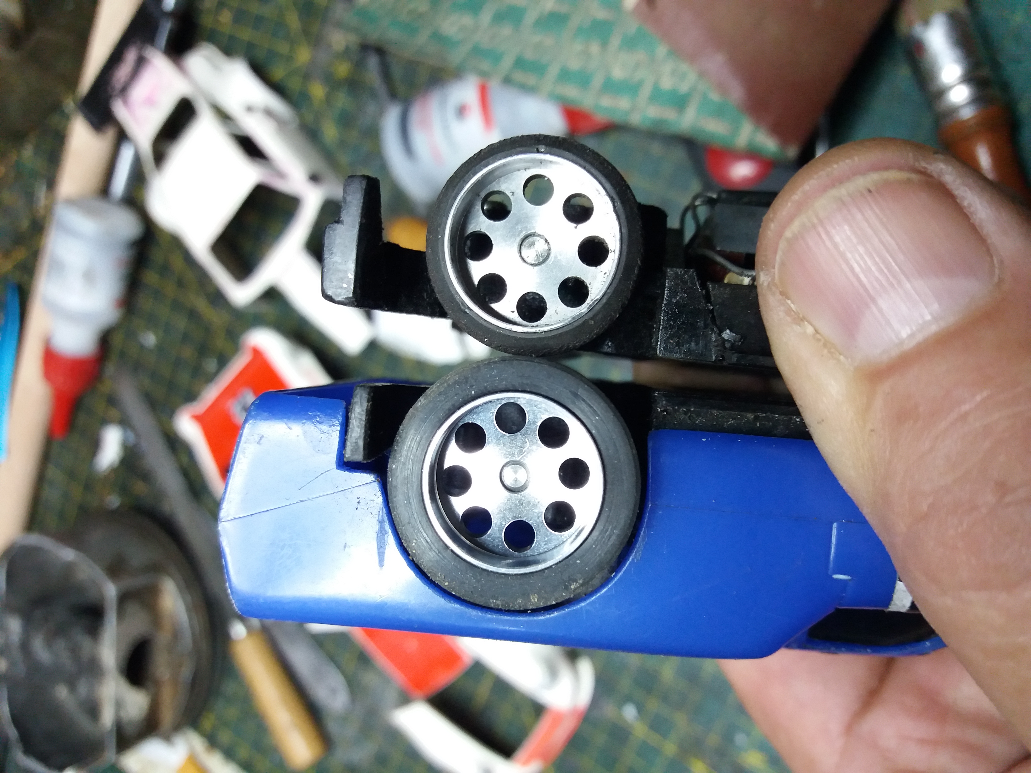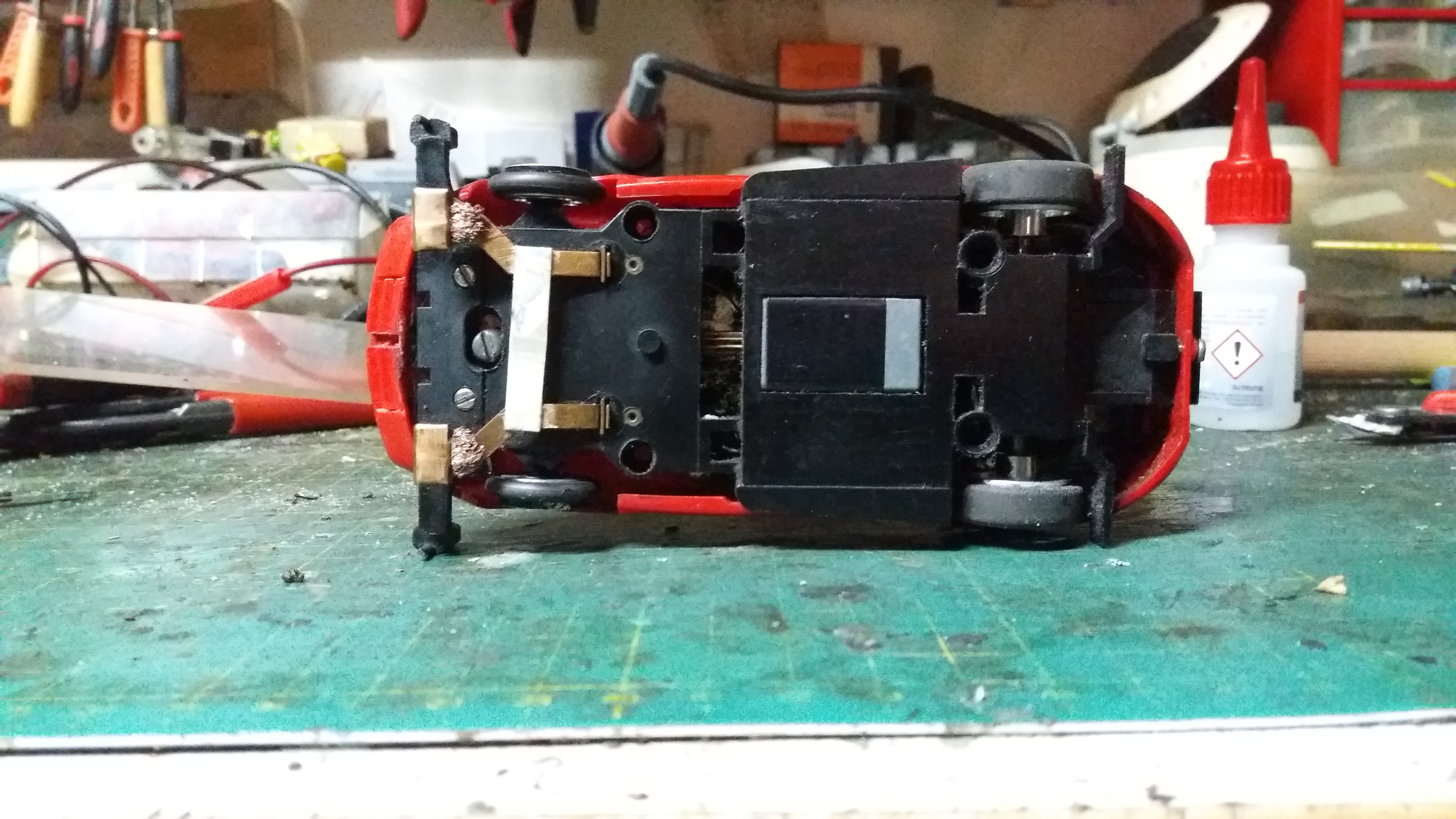 ...der testet gerade mit Klebeband fixierte 13a auf großen Felgen