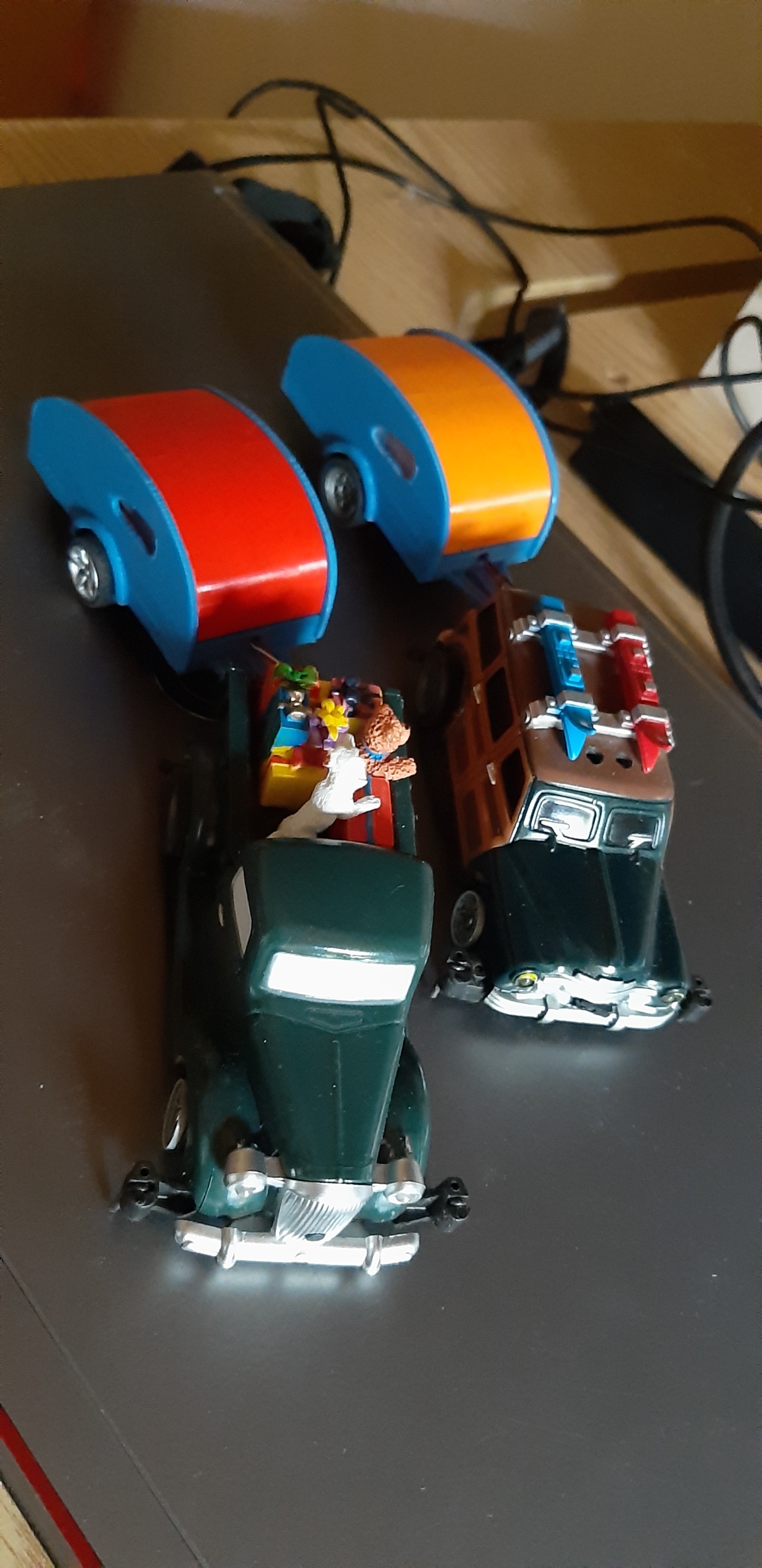 Somit kann man die Fahrzeuge beliebig ans Auto hängen, wenn man z.B. nur den Motor antreiben möchte. Dann reichen auch 2 Drähte.