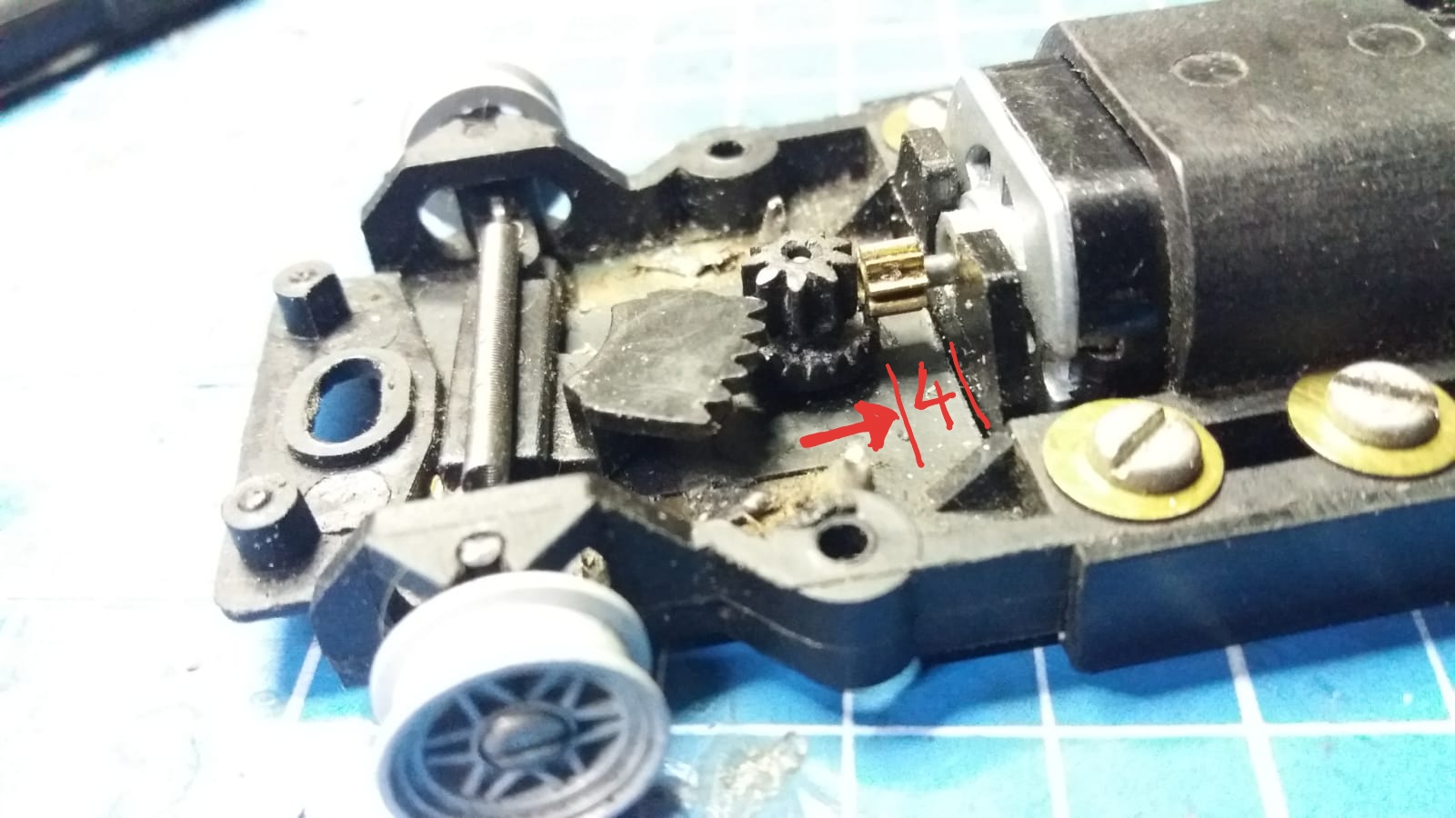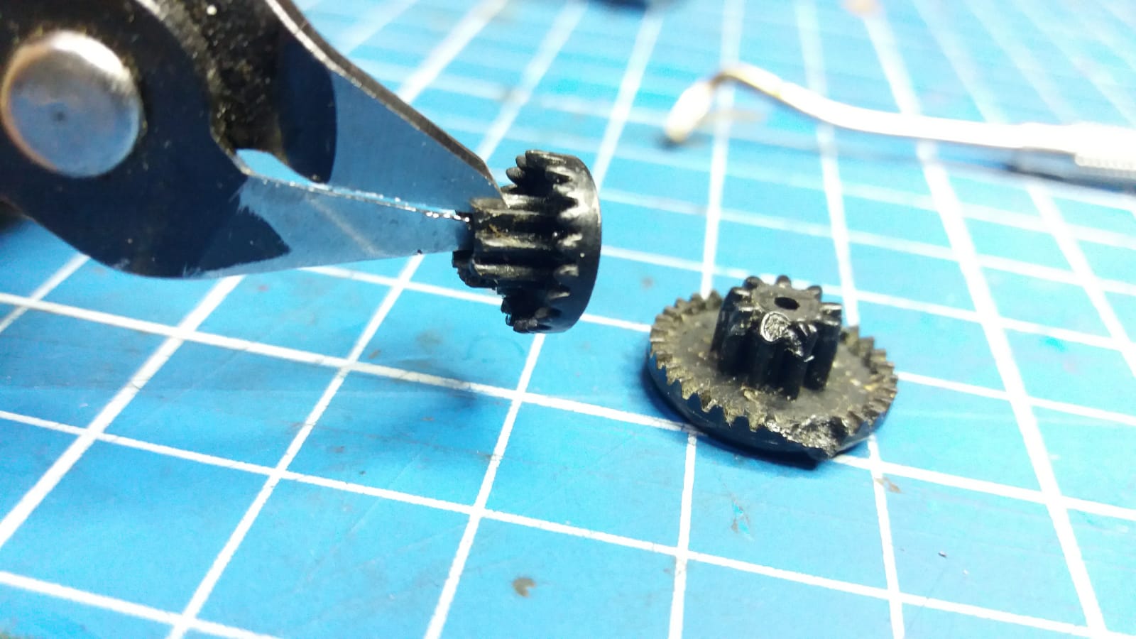 Man könnte das ins 132er Chassis passende 140er Kronenrad auch intakt lassen...und nur Teile des 140er Lenksegments, die Zahradstange, 2x nebeneinader (weil kurz) auf's gekürzte (Karies imitieren, Zähne ab) 132er Lenksegment kleben...was stabiler wäre...vielleicht