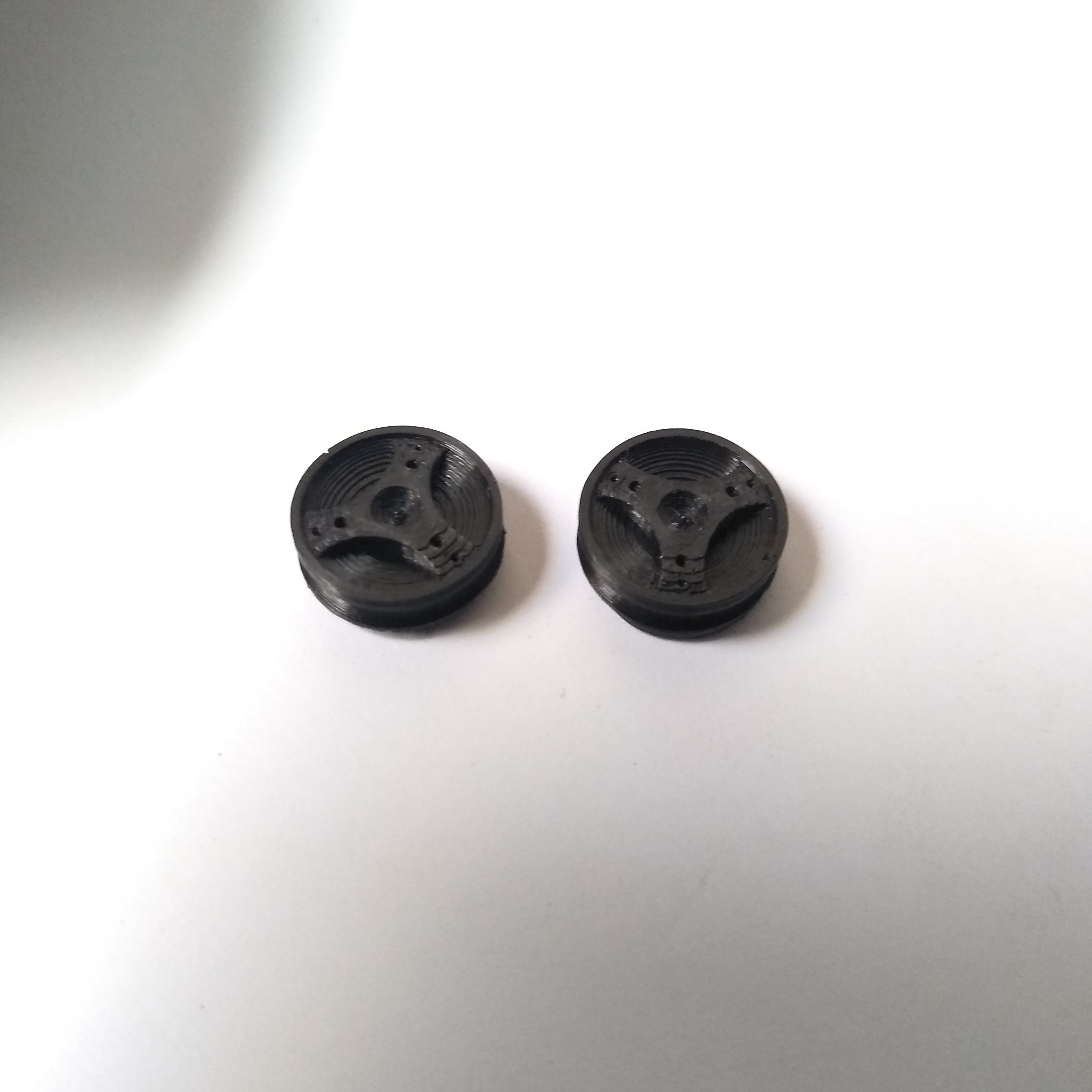 Die Vorderräder sind für O-Ringe vorgesehen und es gibt 2 Versionen. Eine mit Ausnehmung für ein Kugellager, eine mit Originaldurchmesser 3,3mm.