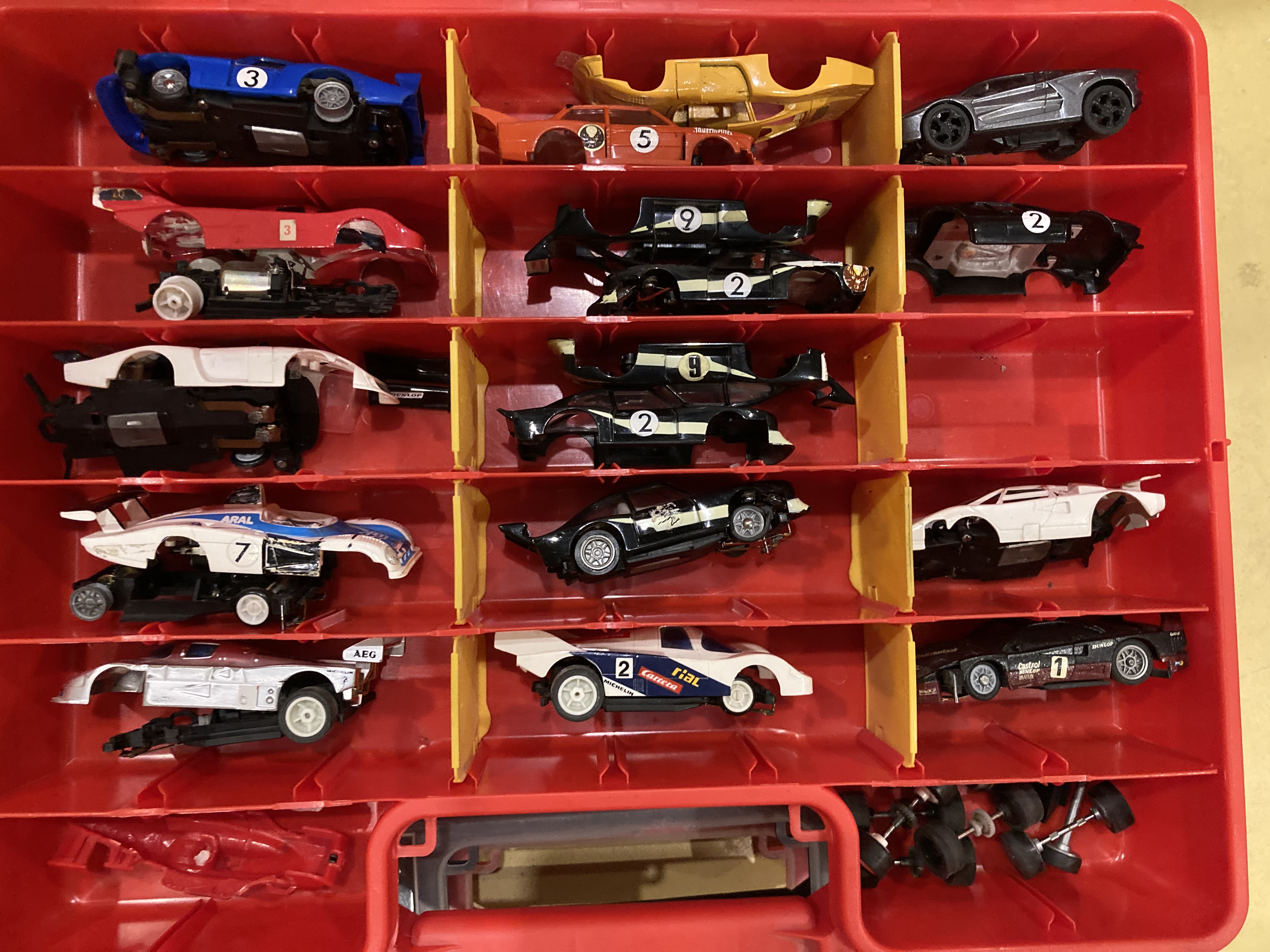 Abzugeben ist das, was auf den Bildern zu sehen ist + Kleinteile und so Zeugs. Die Boxen, in denen die Autos sind geb ich dazu.