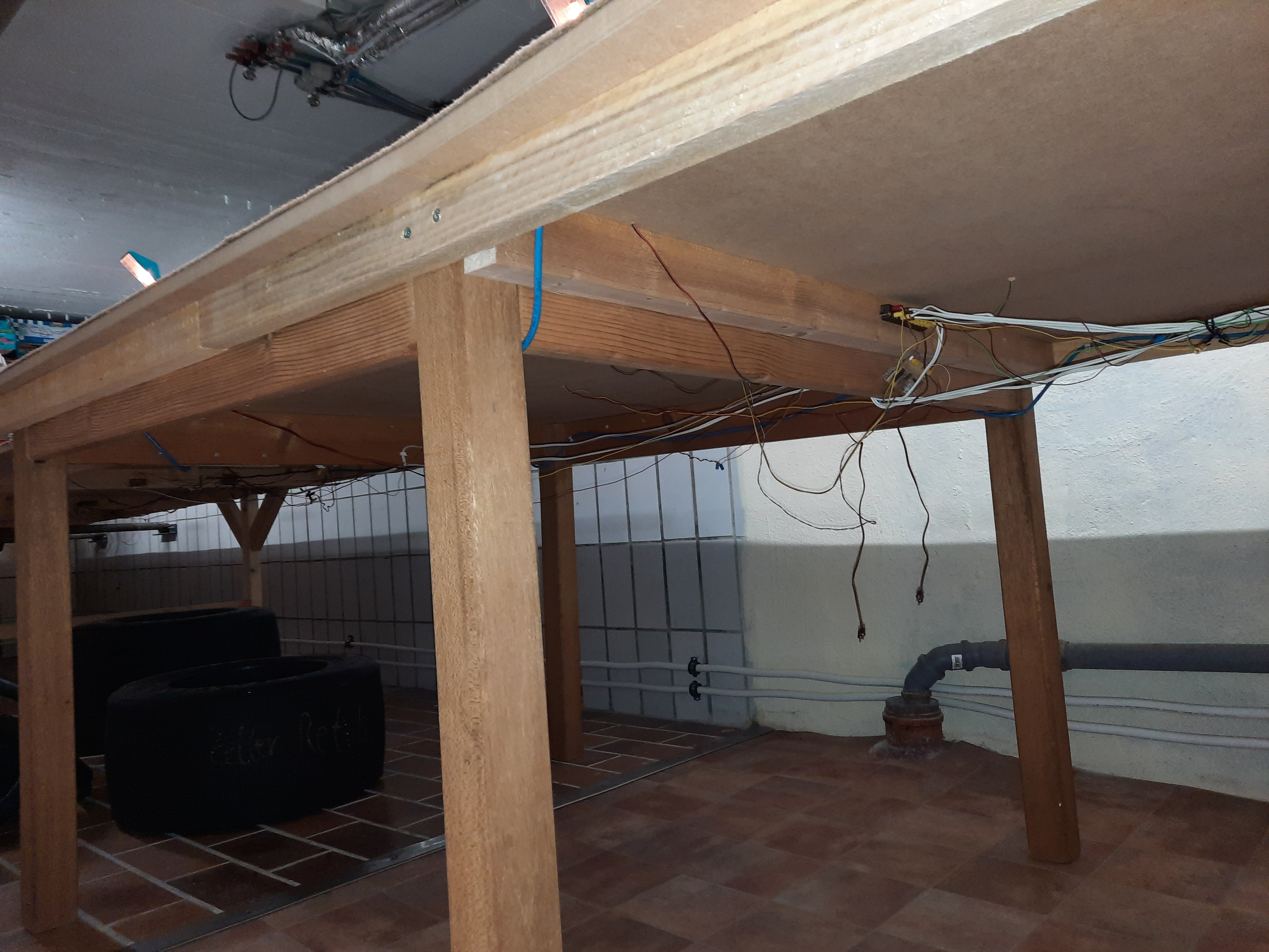 Und darunter ist genug Platz, und zur Kontrolle, ob alle SChrauben die Unterzüge getroffen haben.