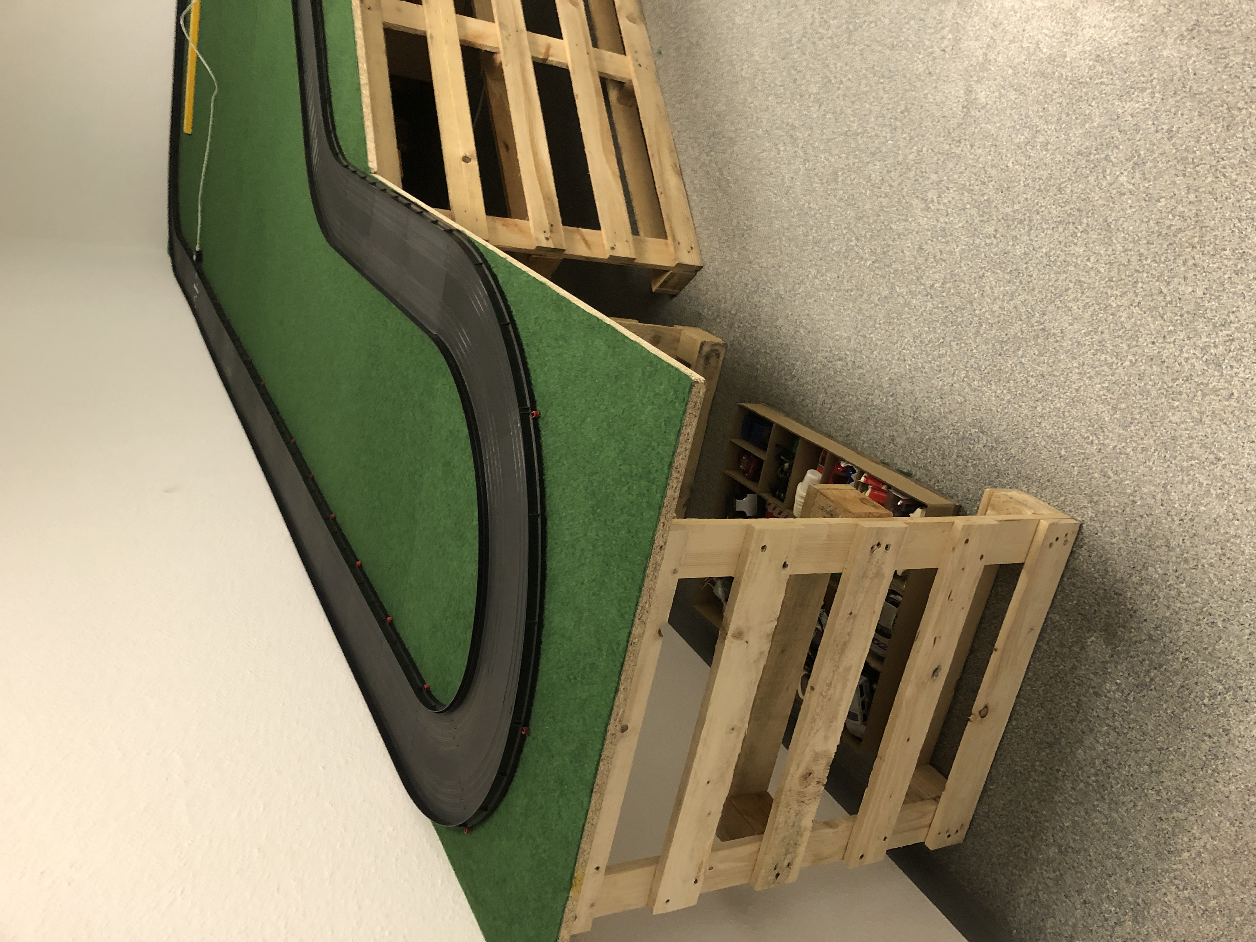 Da im bestehenden Design die Mittelleitplanke der schließenden Schikane ja direkt bis zur 180° vor Start/Ziel reicht, würde ich diese 180° Kurve zur Plus-Kurve machen und die Mittelleitplanke danach auch noch weiter an der Boxeneinfahrt vorbeiziehen, somit hätte man beide Spuren brauchbar. Dietmar hat es bei der Boxeneinfahrt auf seiner 160er Bahn super vorgezeigt