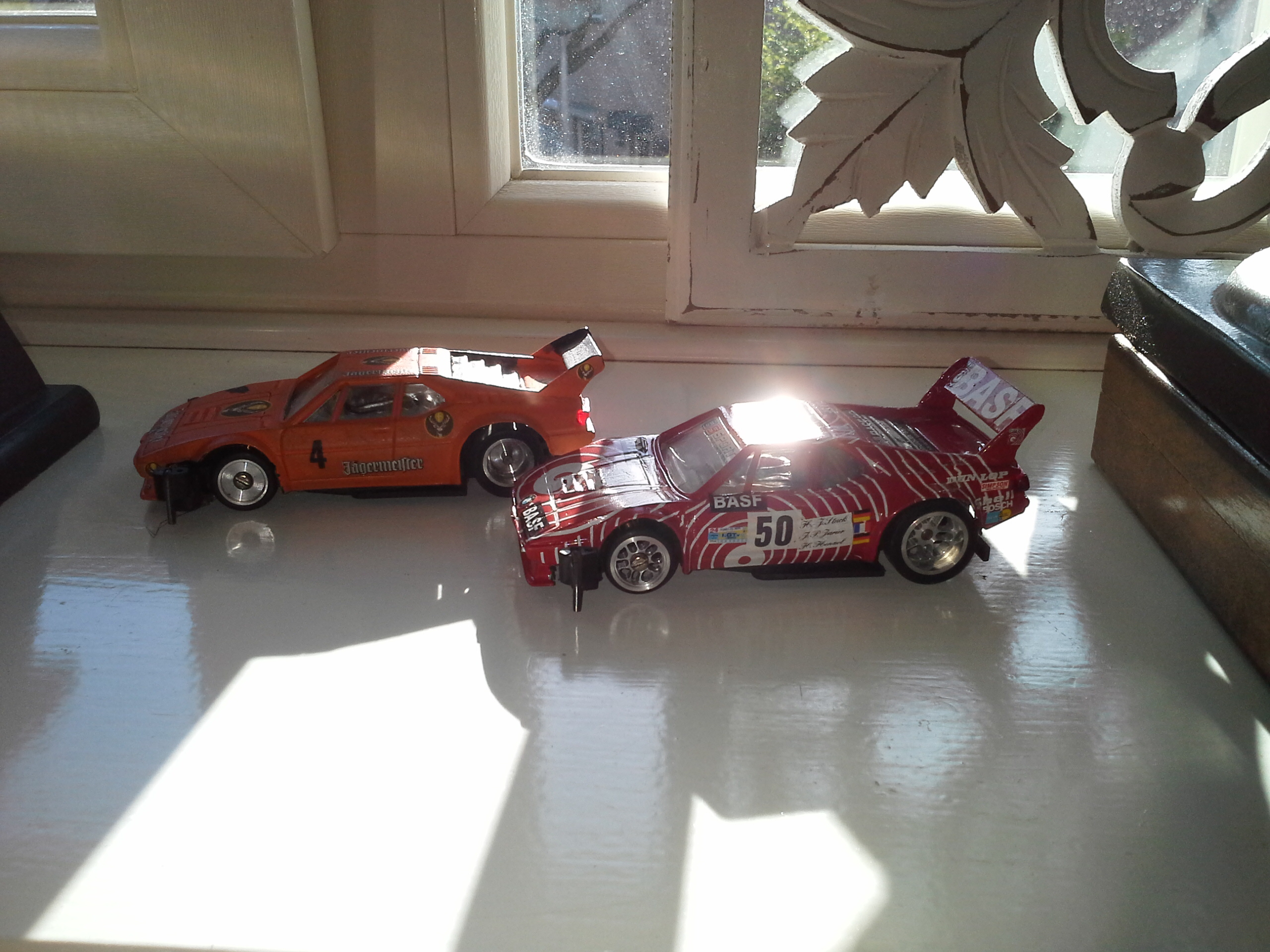Wollte ich noch sagen ja wackeln tun die beiden auch und sind schnell der Orange ist ne Mabuchi und hat ne schnelle Zeit gefahren auf der Bahn von Helmut. :ok: