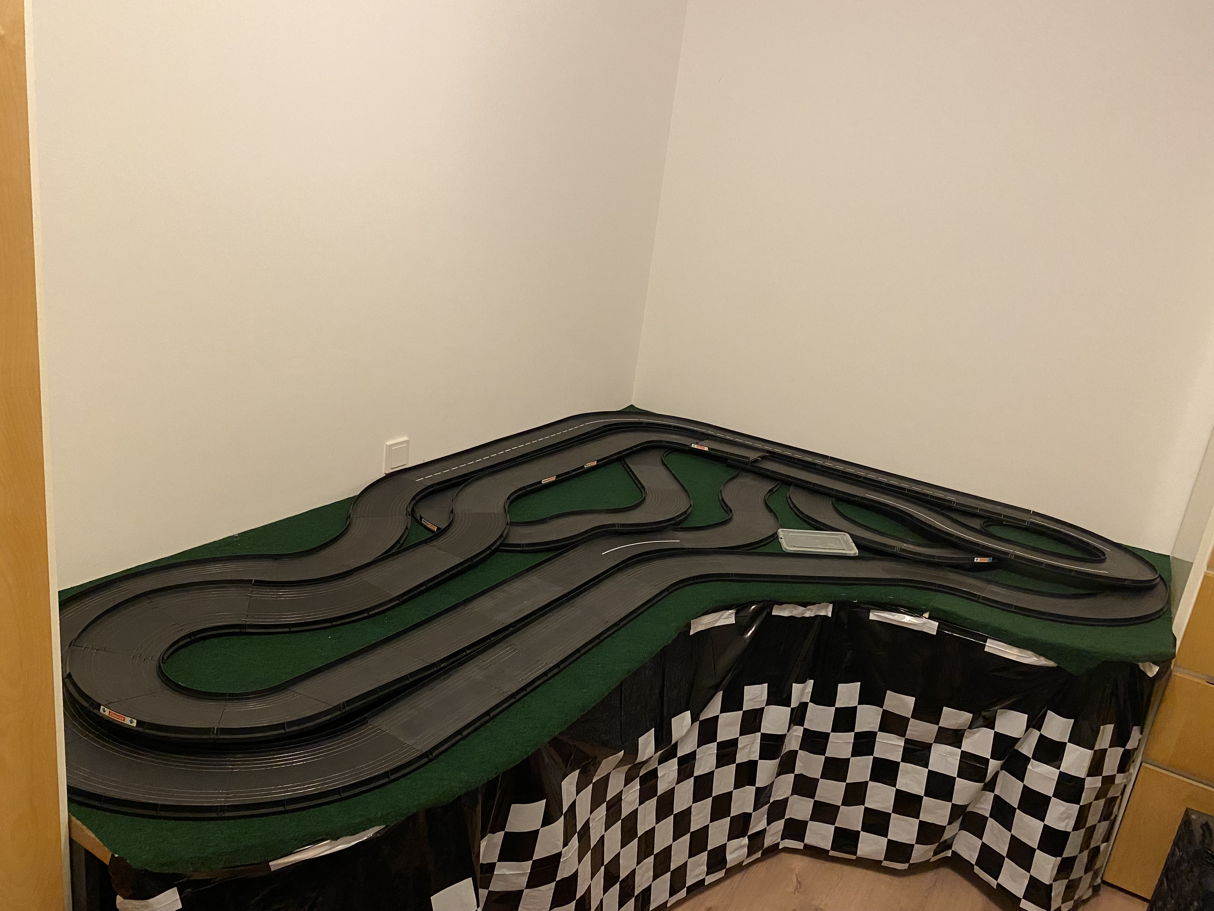 Ich habe mir im hintersten Bereich Pluskurven gebastelt weil wenn man dort rausfliegt dauerts bis der wagen wieder eingesammelt ist