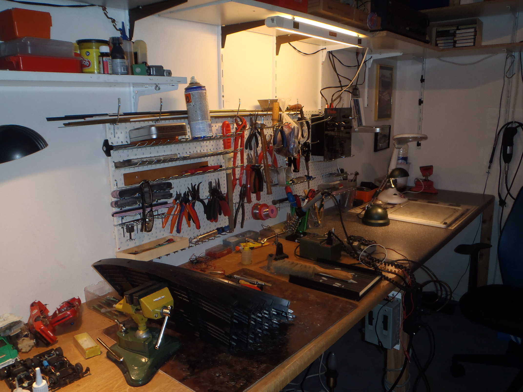 Habe dazu ein Stilleben unserer Schrauberplätze abgelichtet, zwischen dem ganzen Kram sehen wir (ausser dem Ki(r)ni):