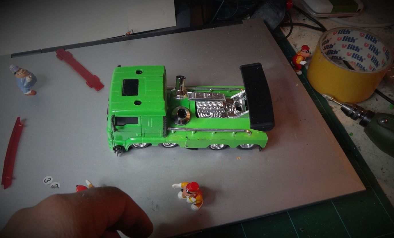 ..joo, schön bekloppt mo widaa...saugudd...das grüne Ding is wida genau so schwäär wie'e Orginal Truck...170grammos...laaaaaaaft...Licht noch, also etwa noch +10gramm.