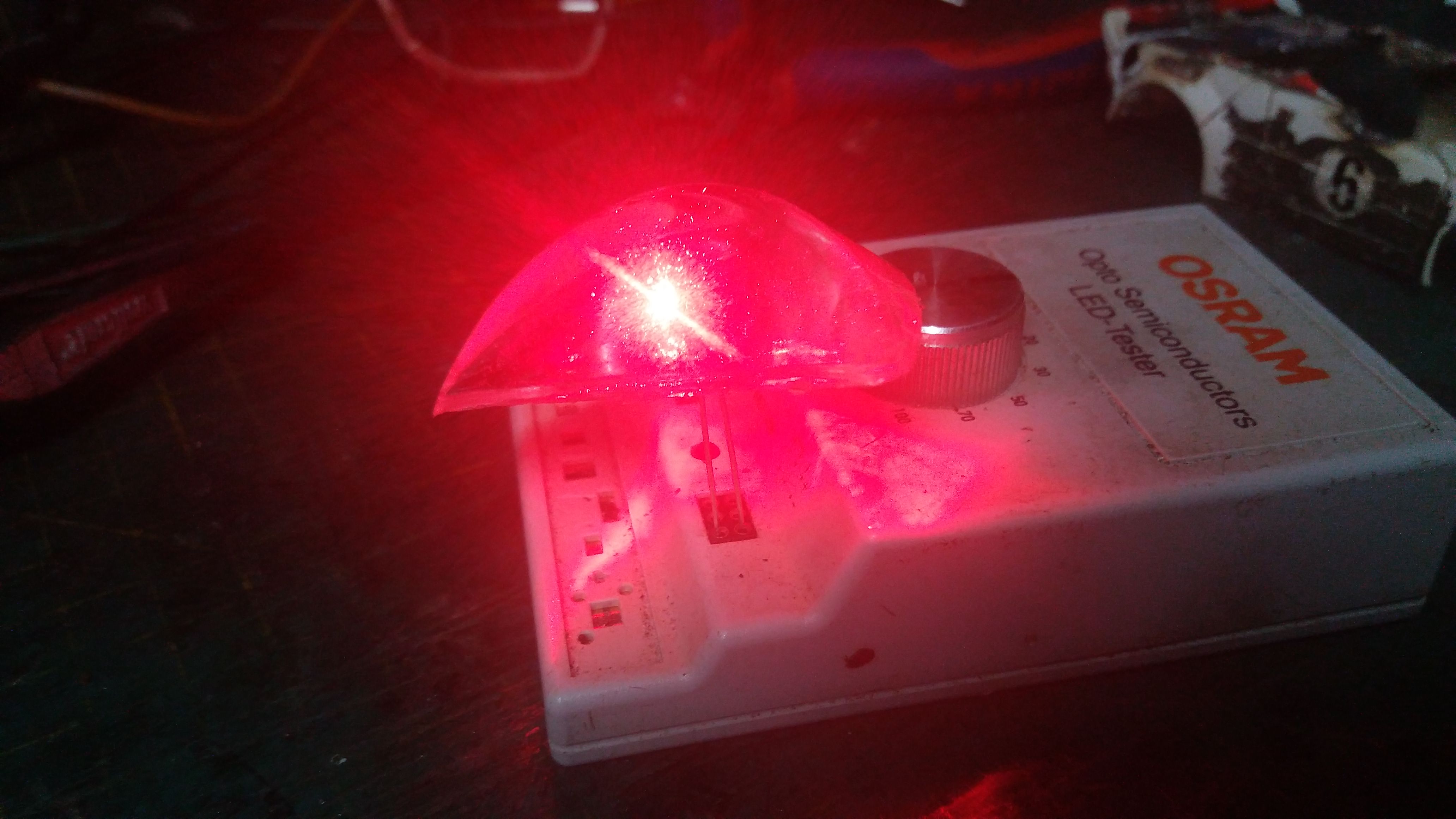 9gramm davon mal in einen Deckel von einer Spraydose gefüllt...Rote LED rein....will sehen wie's
