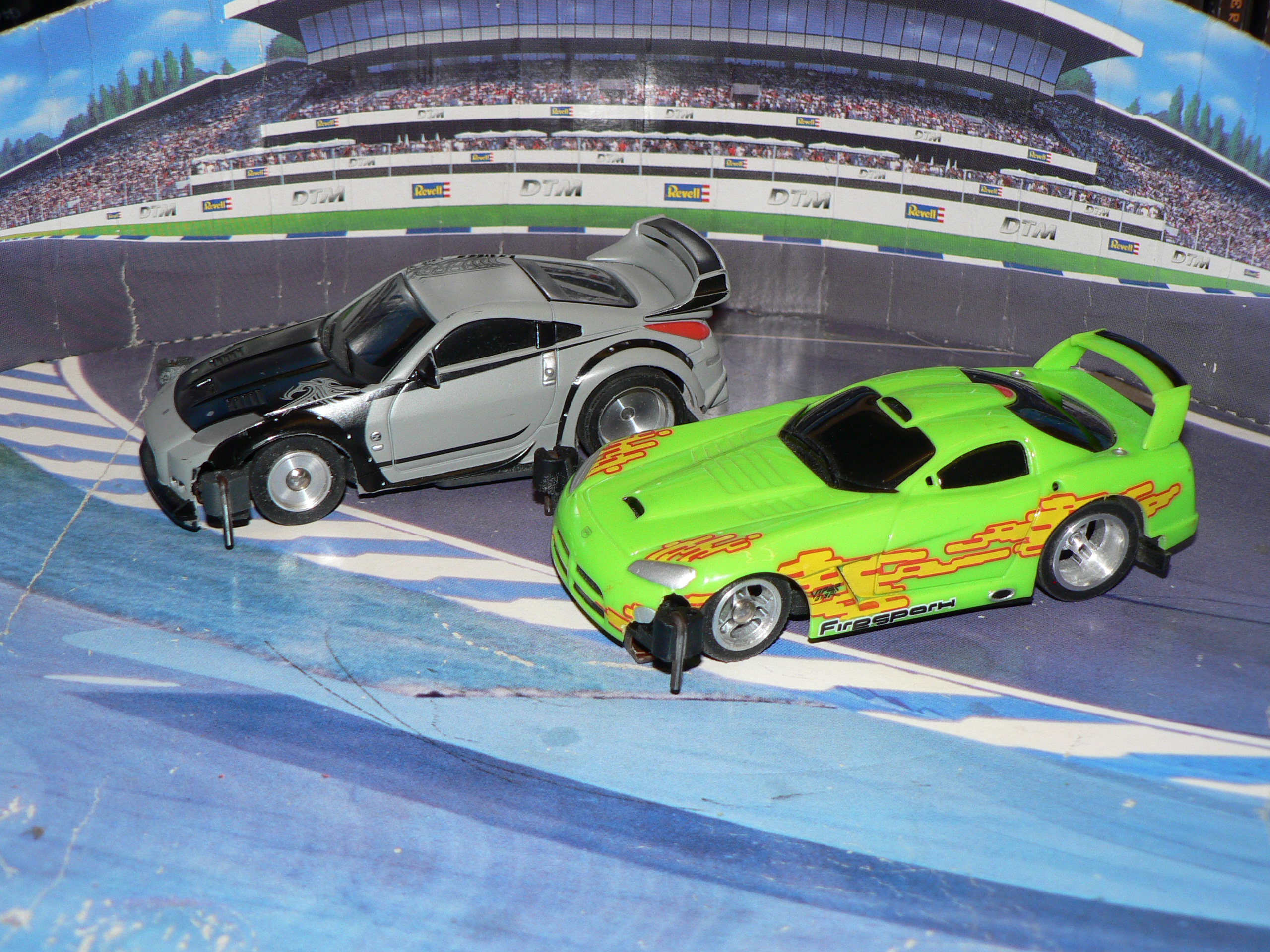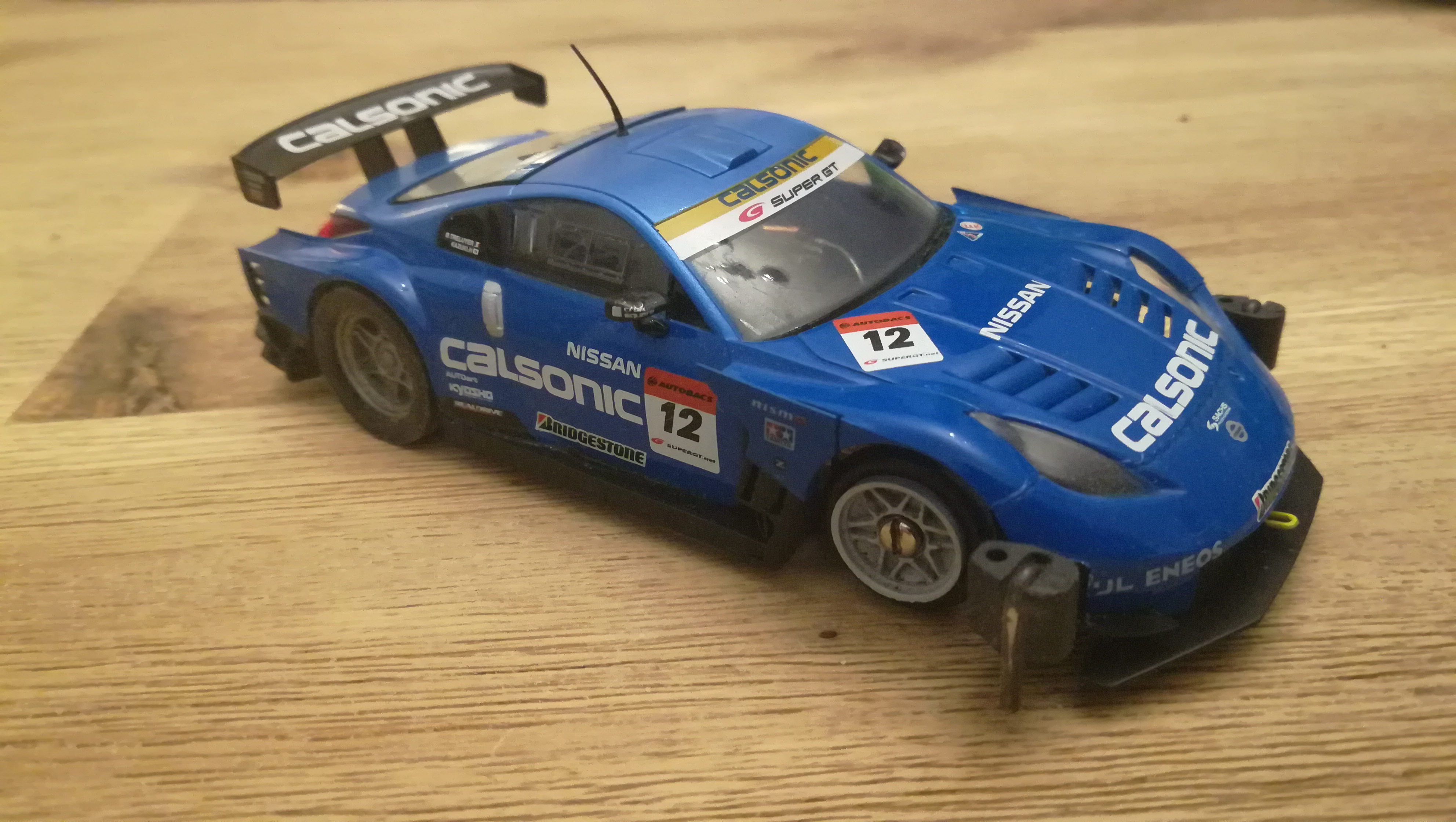Sehr farbenfroh und passt, wenn man die Radhäuser vorsichtig beide nach innen vergrössert, tadellos auf ein Standartchassies. Dazu passend ein Nissan: Schönes Päärchen.