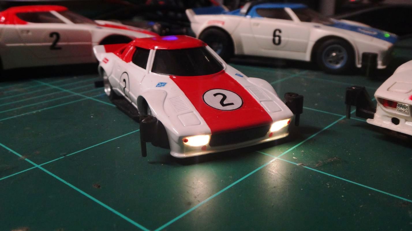 3 weitere. Die Corvette musste ich etwas verlängern. Der Porsche müsste etwas verkürzt werden, aber sowas mache ich nicht. Habe die Karosse etwas angepasst, Blaulicht läuft momentan nur auf einer Spur, der Gleichrichter wird noch eingebaut. Allesamt Carrera Go.