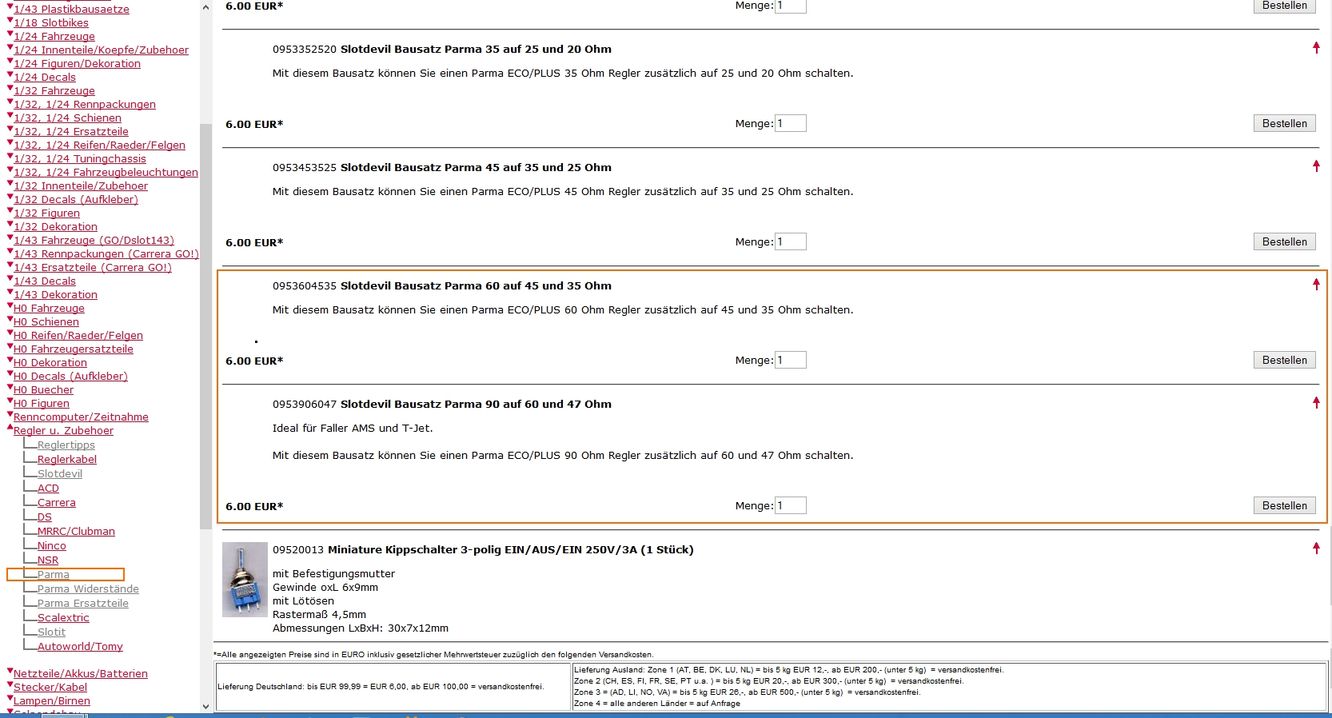 findest du Slotdevil Umbausätze für Parma Regler.