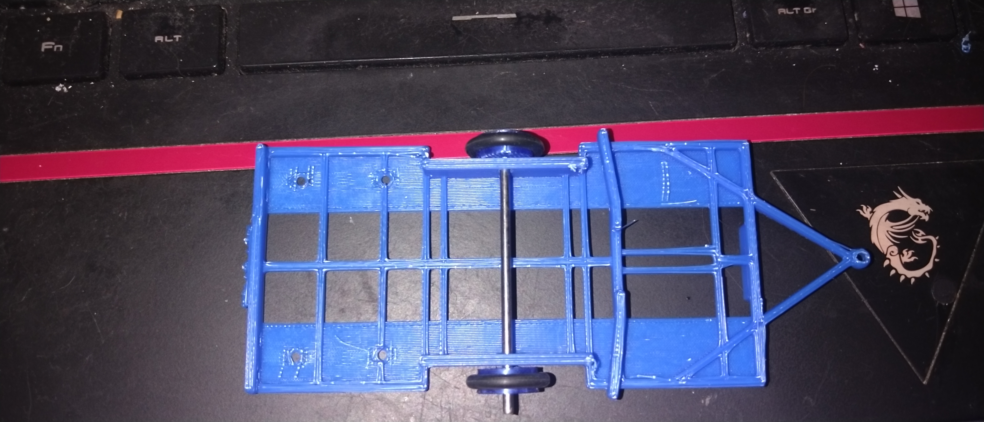 Der Abweiser ist vor der Achse. Kaum Sichtbar, Da der Anhänger so breit wie ein Servo Auto ist.
