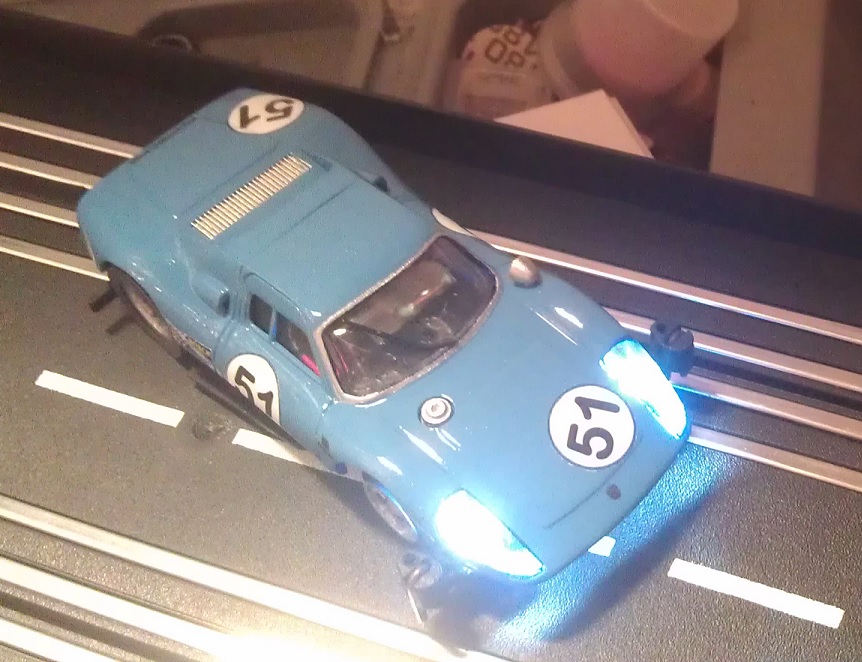 ..hab 3,0mm Led's mit Widerstand und Gleichrichter verbaut..um die Led's einsetzen zu können musste ich die Karosse von innen mit nem kleinem Fräser aufräsen-immer kurz vorm Herzklabaster- das ich nicht mit meinem nervösen Fingern auf einmal mit der Fräse vorne herausluge :o