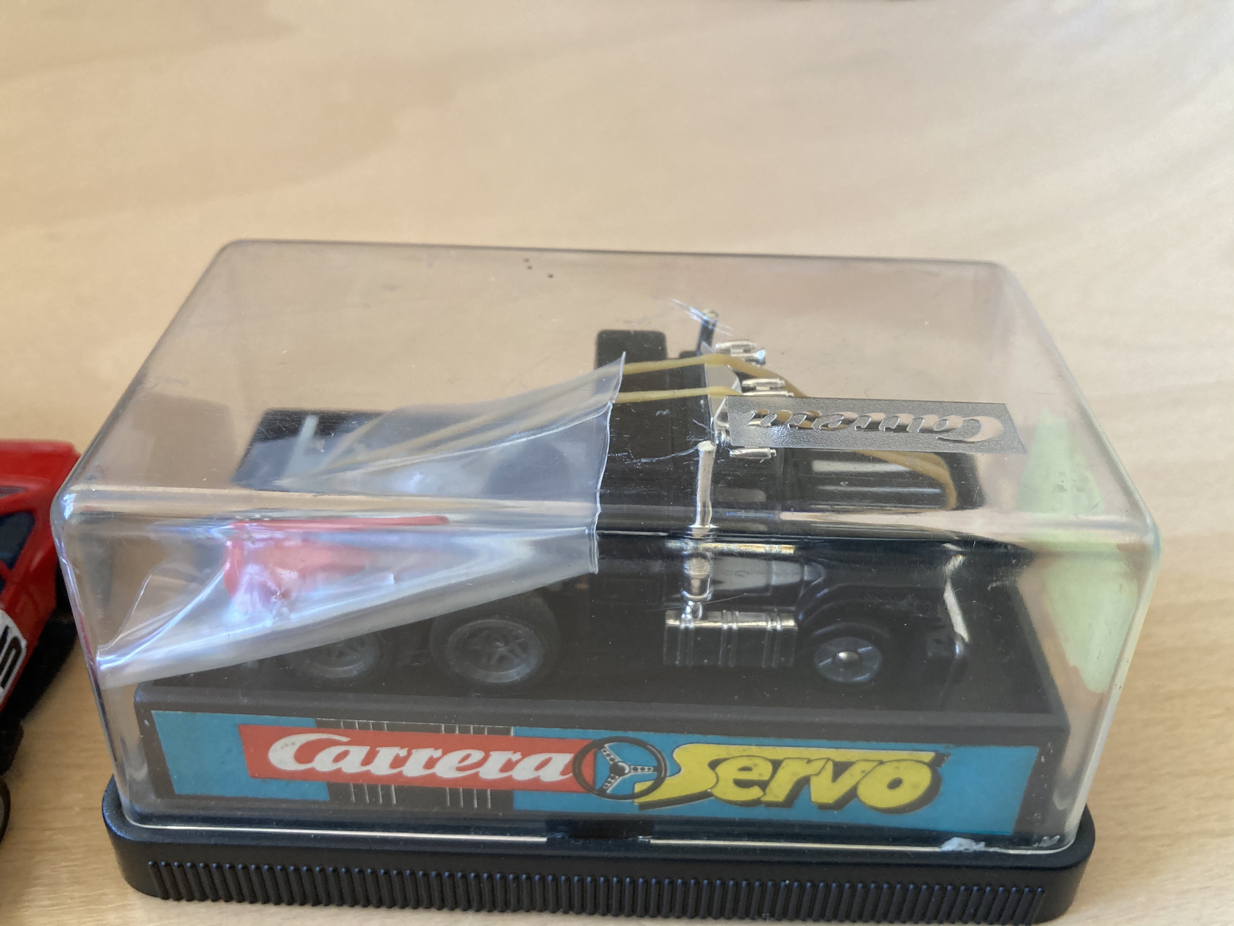 Hallo, ich heiße Peter, bin Carrera verrückt, aber mit Servo nichts am Hut. Jetzt sind Mücken paar Teile in die Hand gefallen, mit denen ich nichts anfangen kann. Falls sie jemand gebrauchen kann, würde ich mich über ein faires Angebot freuen. Die Grundpackung Transpo 160, der Kenworth Truck und die beiden 140er in ovp scheinen alle unbenutzt zu sein. Die anderen sind sehr guter Zustand. Viele Grüße