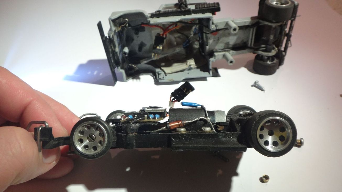 ...die Brücke lässt sich ja einfach abschrauben und an ein anderes Chassis schrauben...pupps auf die paar Leds im BMW...den gekürzten Platinenstecker an der Karosse kann ich abschneiden und wieder verwenden...Super Sache :banana: