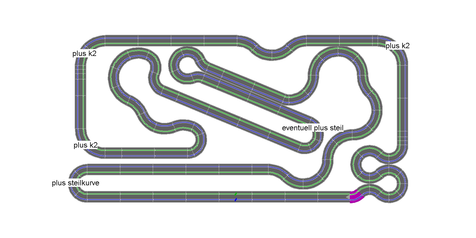 Nur eins wollte ich anmerken: Für mich hat die 22,5 Grad Kurve den Sinn, die längste Gerade in die Mitte zu bringen, um es für beide Fahrer (die sich ja gegenüber stehen) gleichermaßen einsehbar zu gestalten.