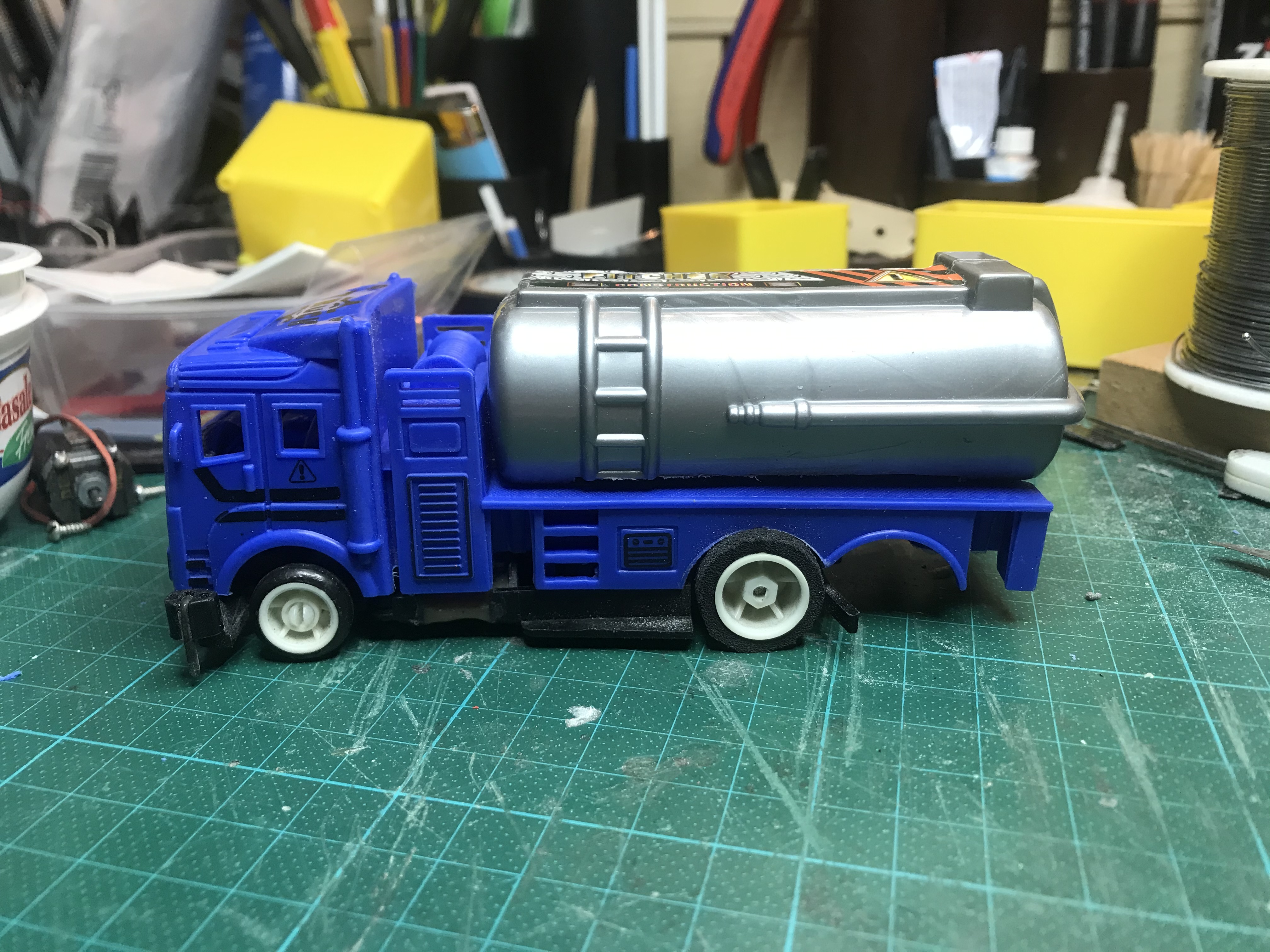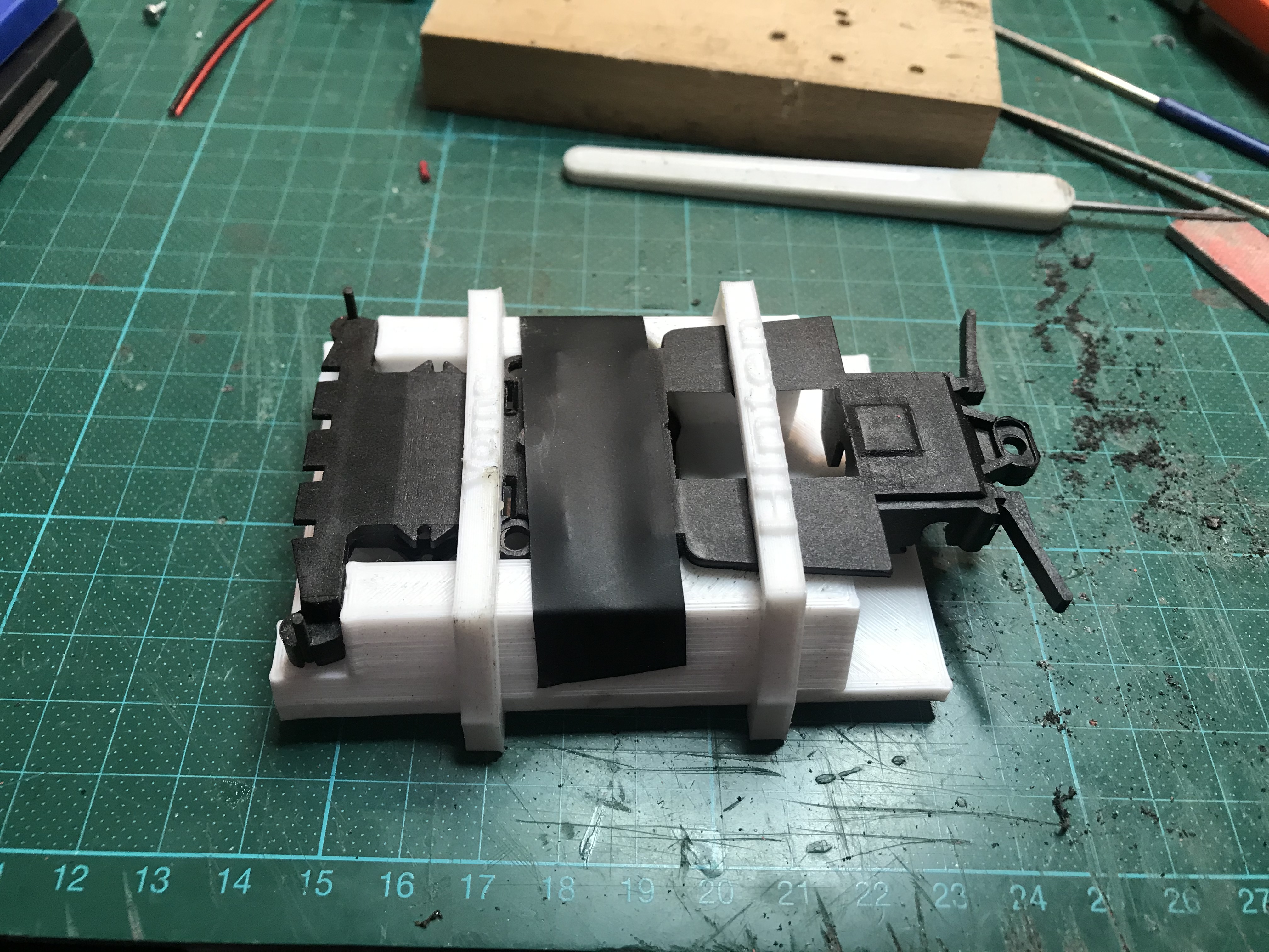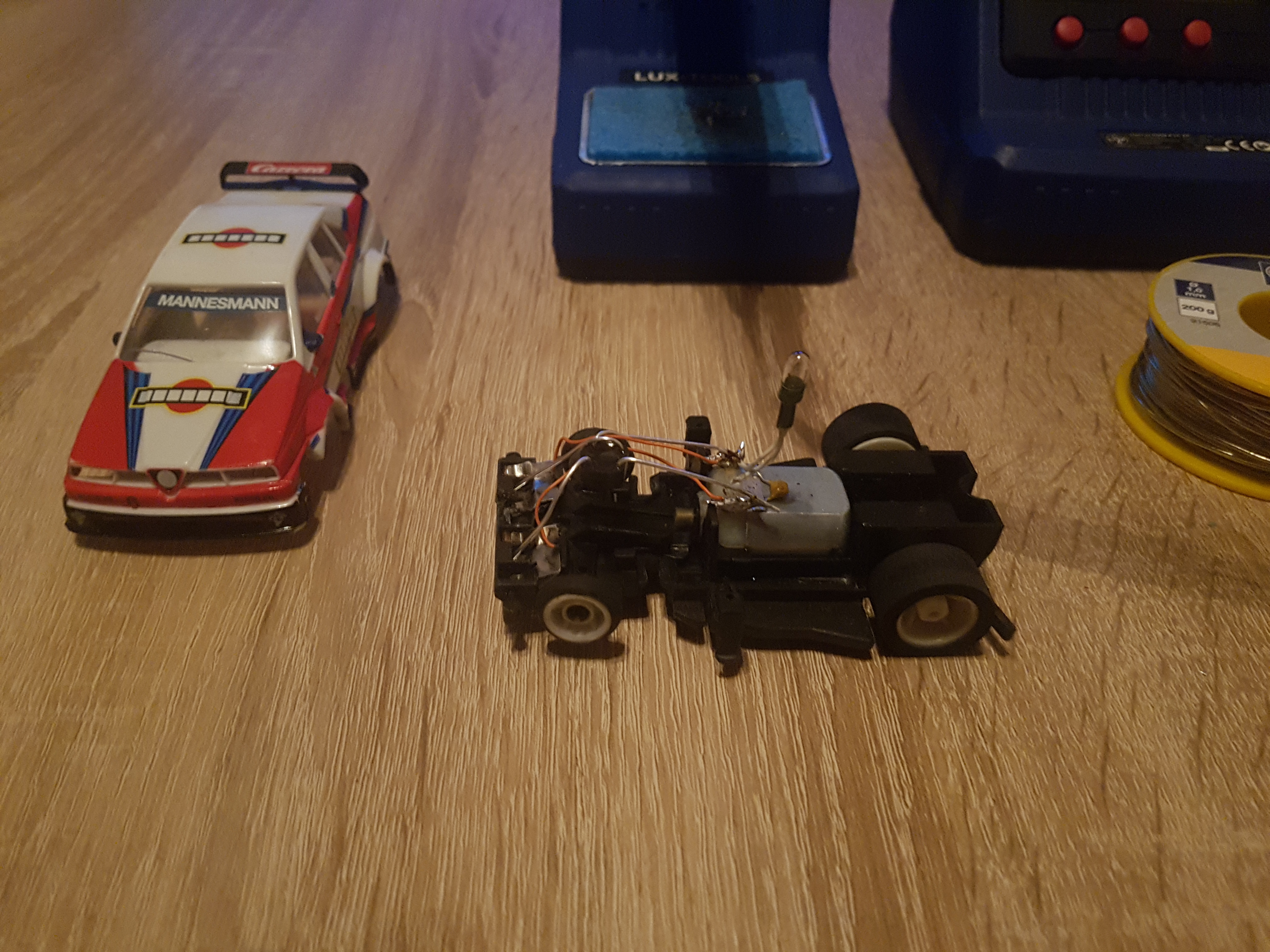 Viel Kleinkram gebastelt ! Batteriehalterung schmäler gemacht , Schalter angebracht , die Lenkmechanik stundenlang optimiert und mit Neodym Magneten funktionierend gemacht... und soweiter