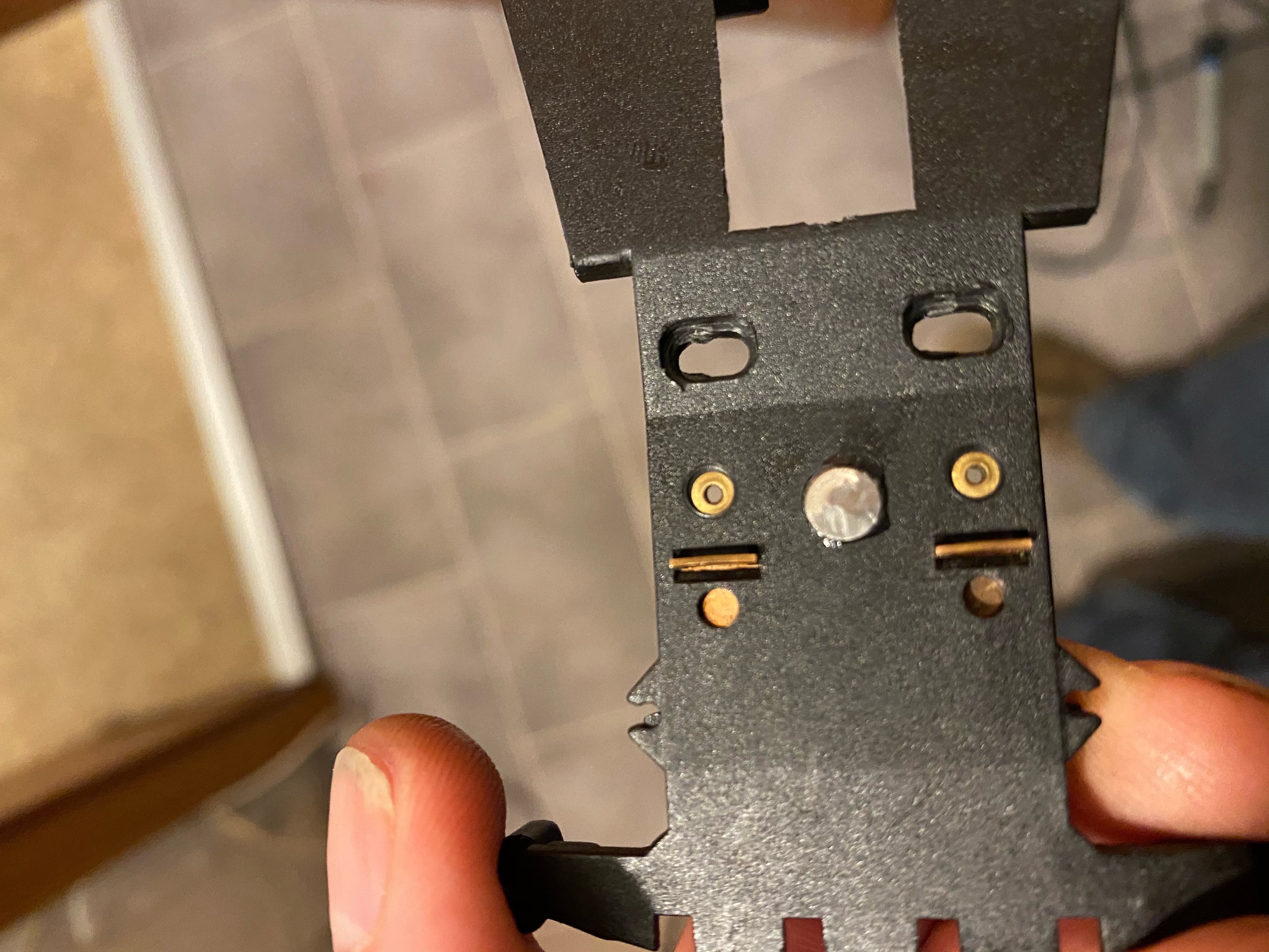 Bis du das graue F1-kompatibel hast, musst du ziemlich viel rumdremeln. Das alte ist schon noch gut, Stahlstift von unten für die Lenkkrone (Nagel und kürzen) und den hinteren Abstandhalter abtrennen und durch einen aus nem Schlachtchassis ersetzen, bzw wie Rufus schrieb, komplettes Heckteil drankleben. Geklebte Endspitzen werden im Fahrbetrieb nie halten.