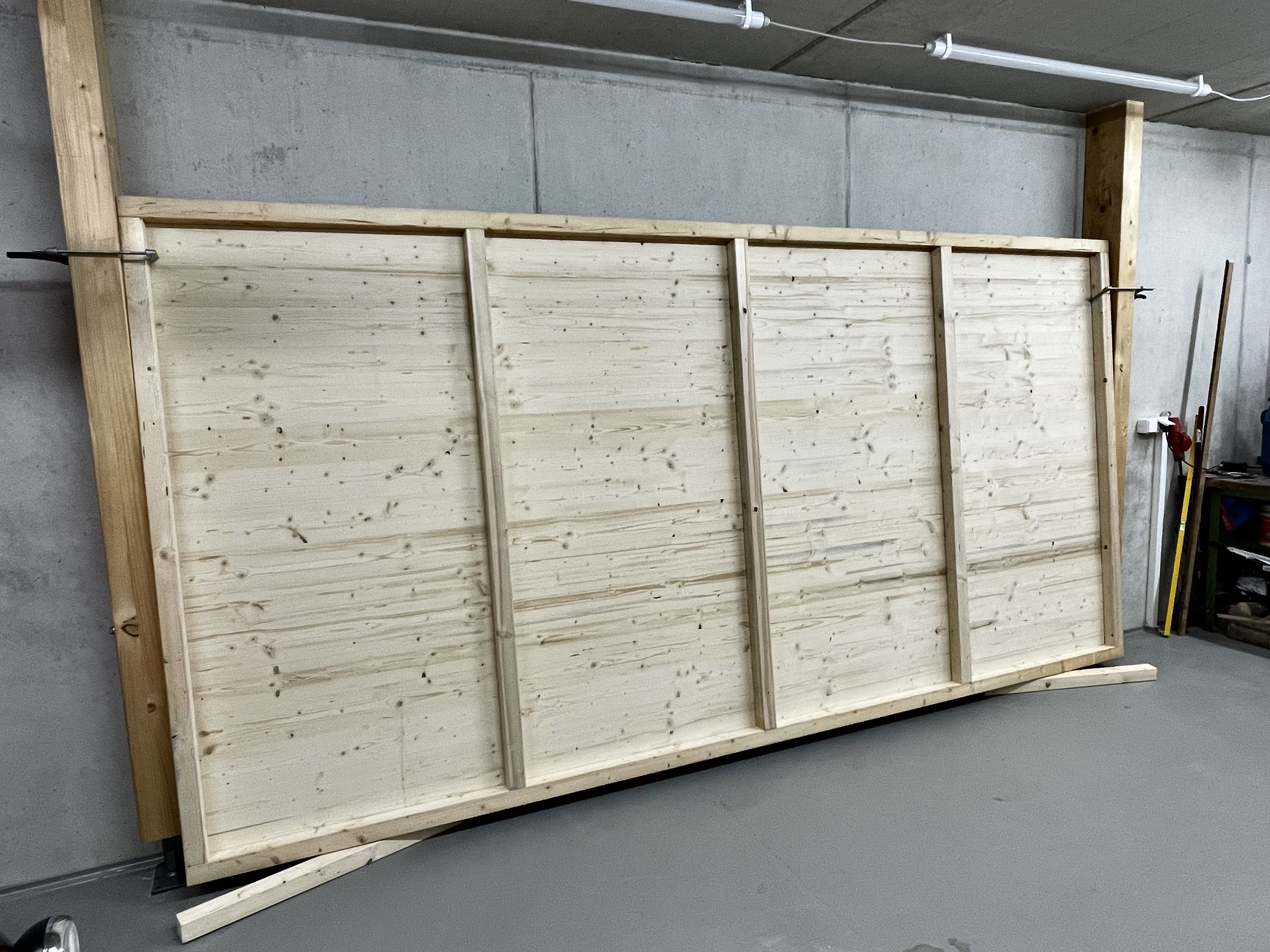 Als Erstes waren mir die 1,99€ Baumarktrollen, auf der die Platte lasten soll, ein wenig zu schwach ausgelegt. Die Platte mit Gestell schätze ich auf ca. 100KG…also, lange Schrauben besorgt, vorne abgedreht und zwei Kugellager montiert…hält!