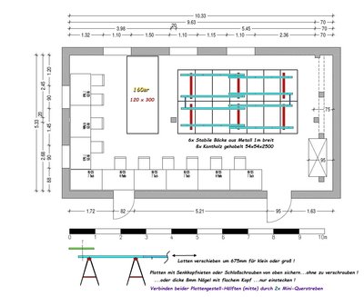 Mit der großen Platte würde quasi dem Vorschlag von Rufus gleichkommen, die 160er kleiner zu bauen. Es sei denn, ich krieg 3m Breite von der großen Platte...