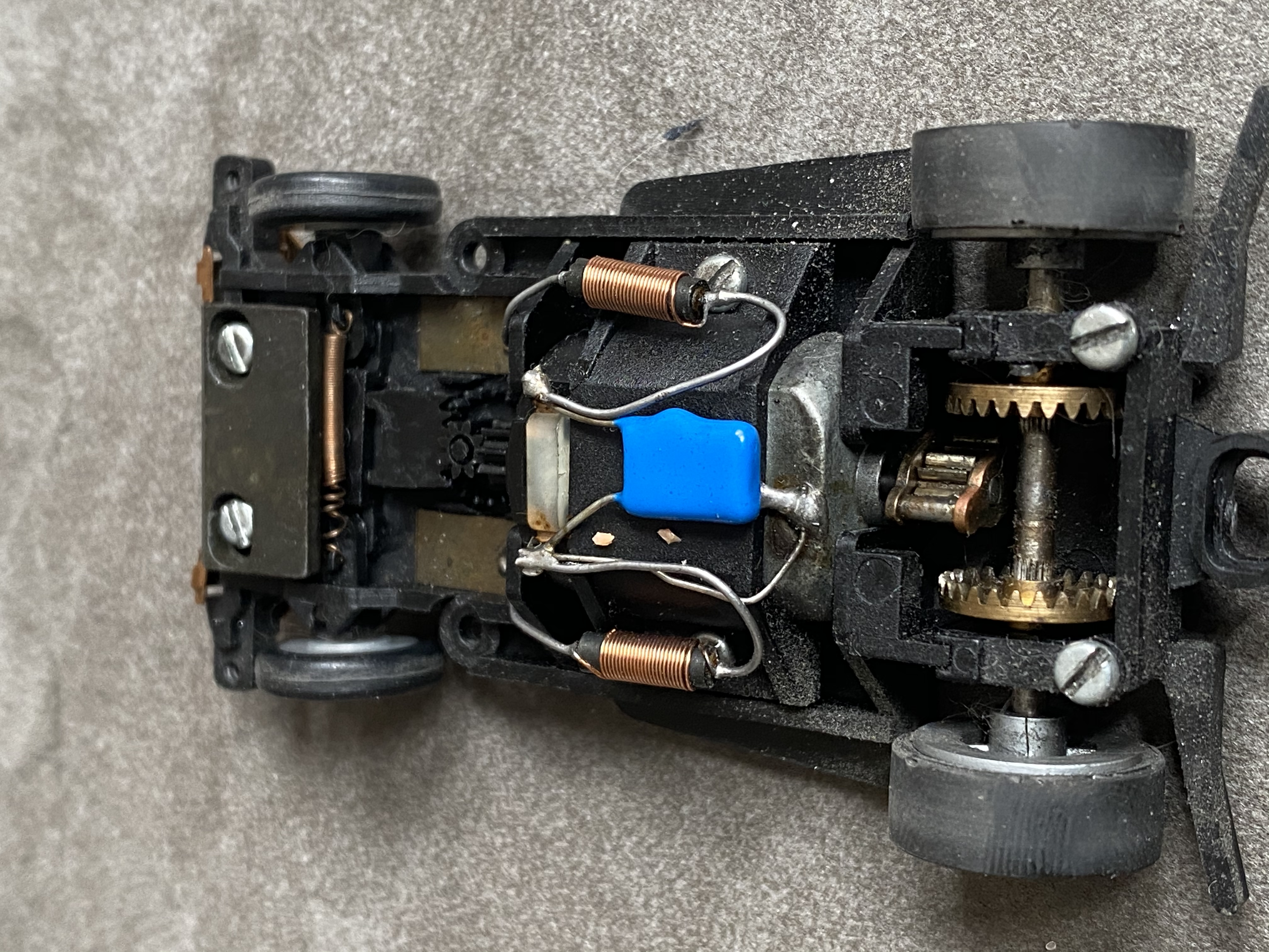 Spurstift raus...und wenn der Federduck der Schleifer stimmt, rennt das Ding....vermutlich besser ohne die zu breite Capri-Karosse