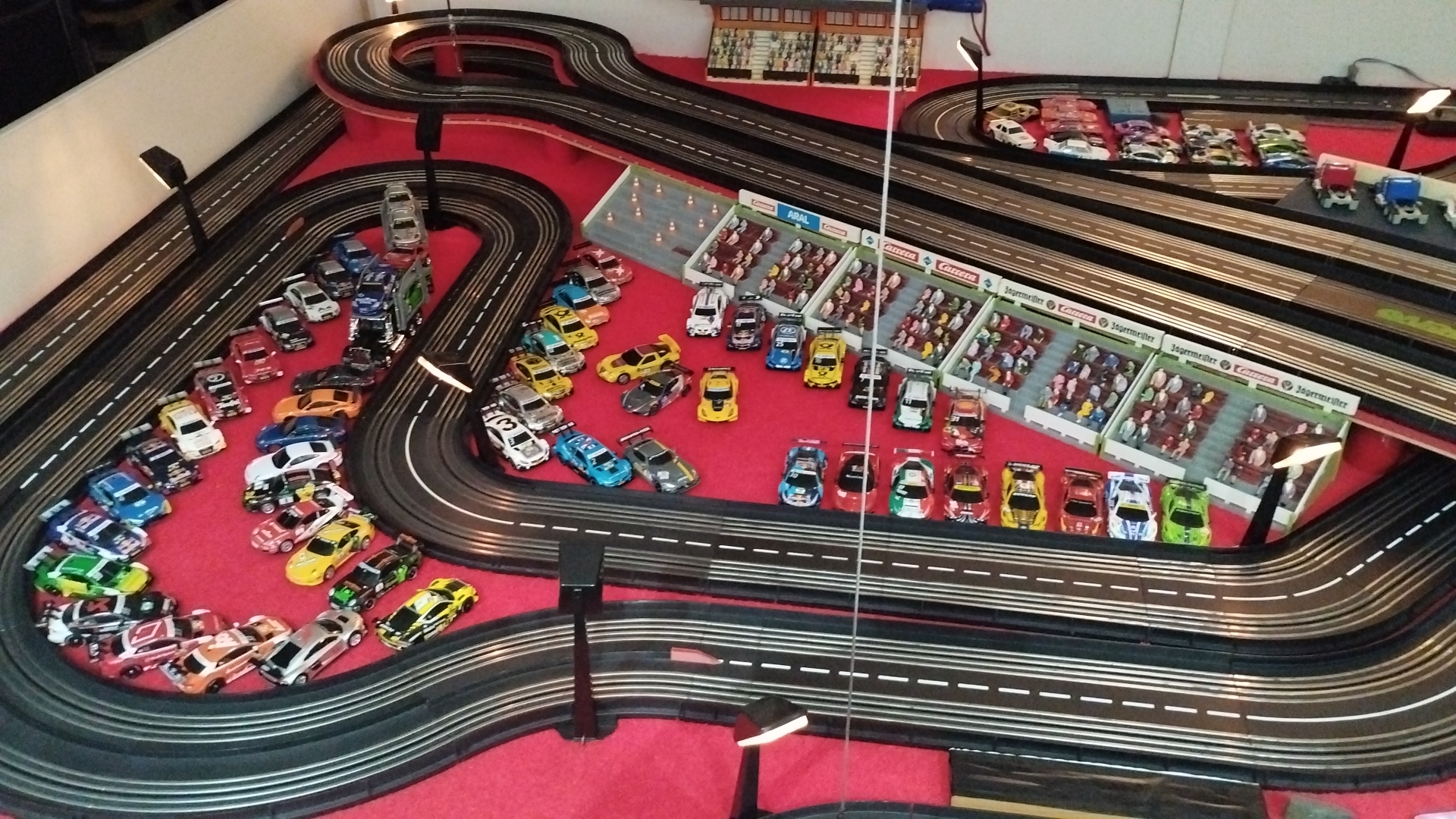 Tribünen sind jetzt voll und Autos geparkt.