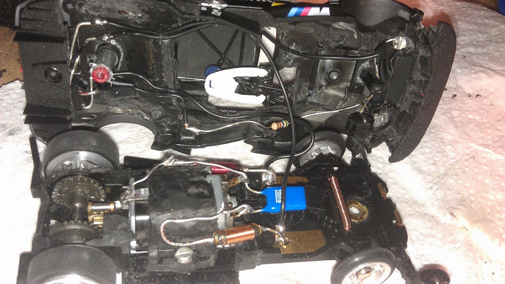 ..hab 3,0mm Led's mit Widerstand und Gleichrichter verbaut..um die Led's einsetzen zu können musste ich die Karosse von innen mit nem kleinem Fräser aufräsen-immer kurz vorm Herzklabaster- das ich nicht mit meinem nervösen Fingern auf einmal mit der Fräse vorne herausluge