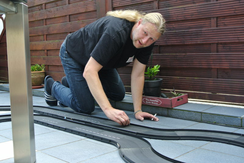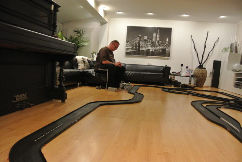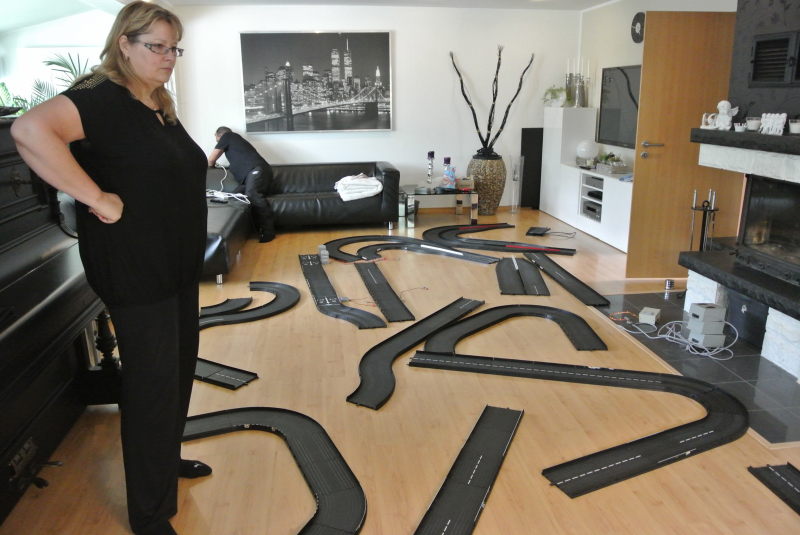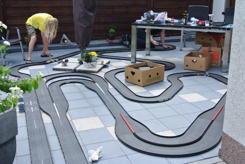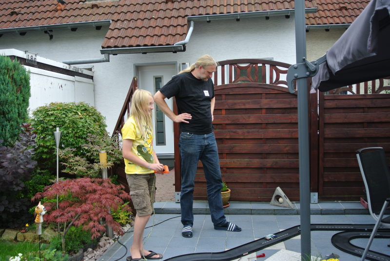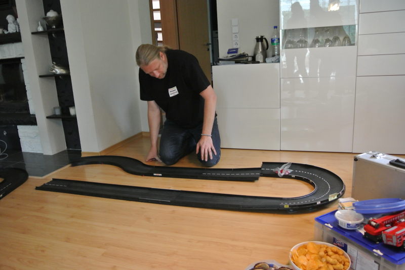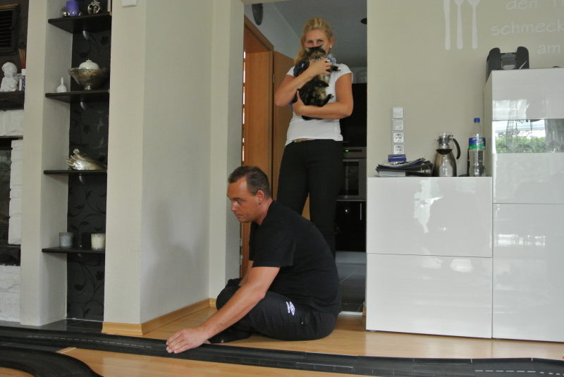 Durch die kurzen Wege gelang es uns in kurzer Zeit eine neue Bahn aufzubauen. Die ersten Proberunden unter Beobachtung der Hausbesitzer.