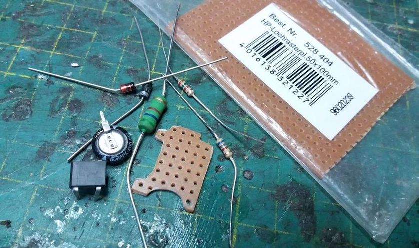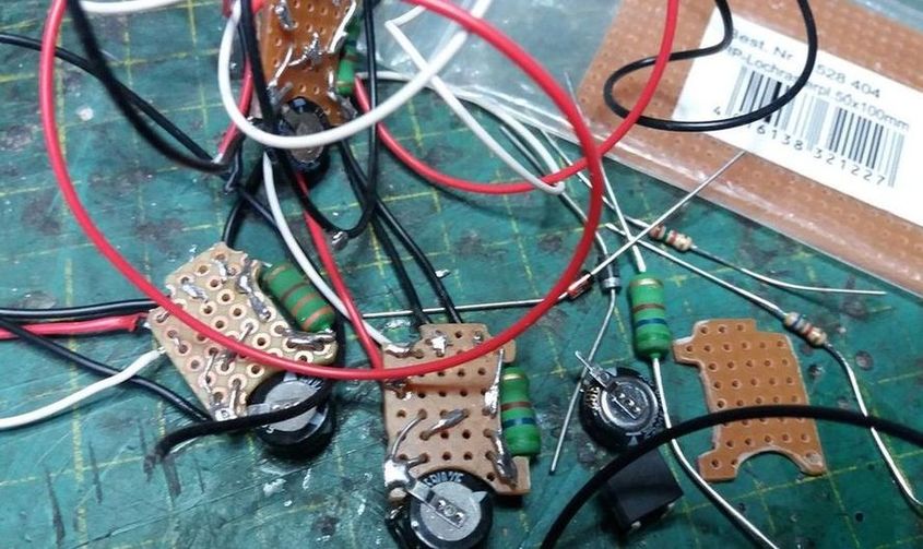 ..zum Wintertreffen...kpl. Bausatz...echt simpel... max. 4 Leds...helles Dauerlicht über Akku für 140 und 132 in verschiedenen Farben machbar...für an den gebrückten Trafo (35V Dauer)...klein , Leicht, simpel zu löten...kann jeder nachbauen.