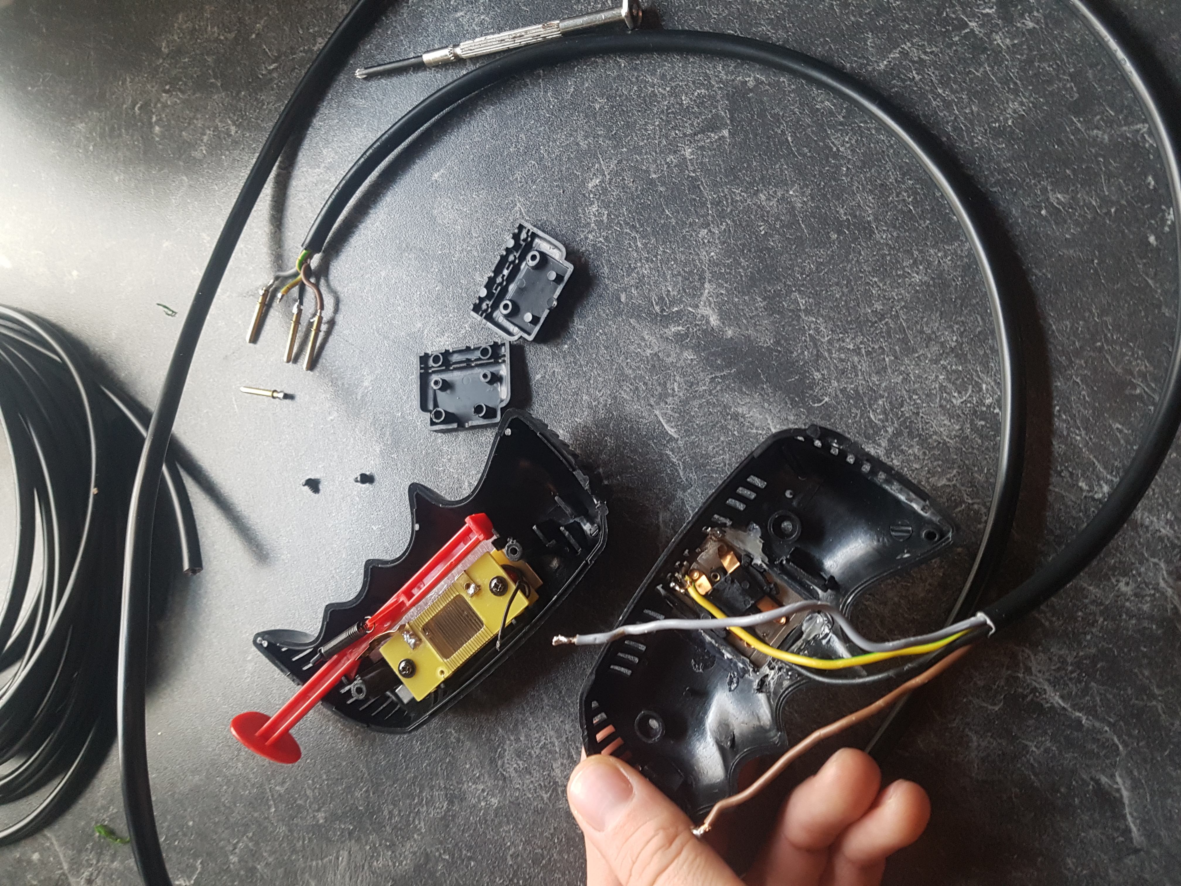 Meine 4×0,75 Kabel sind sehr starr und daher nicht so flexibel, was ein Problem beim verlöten an der Lenkplatine birgt.