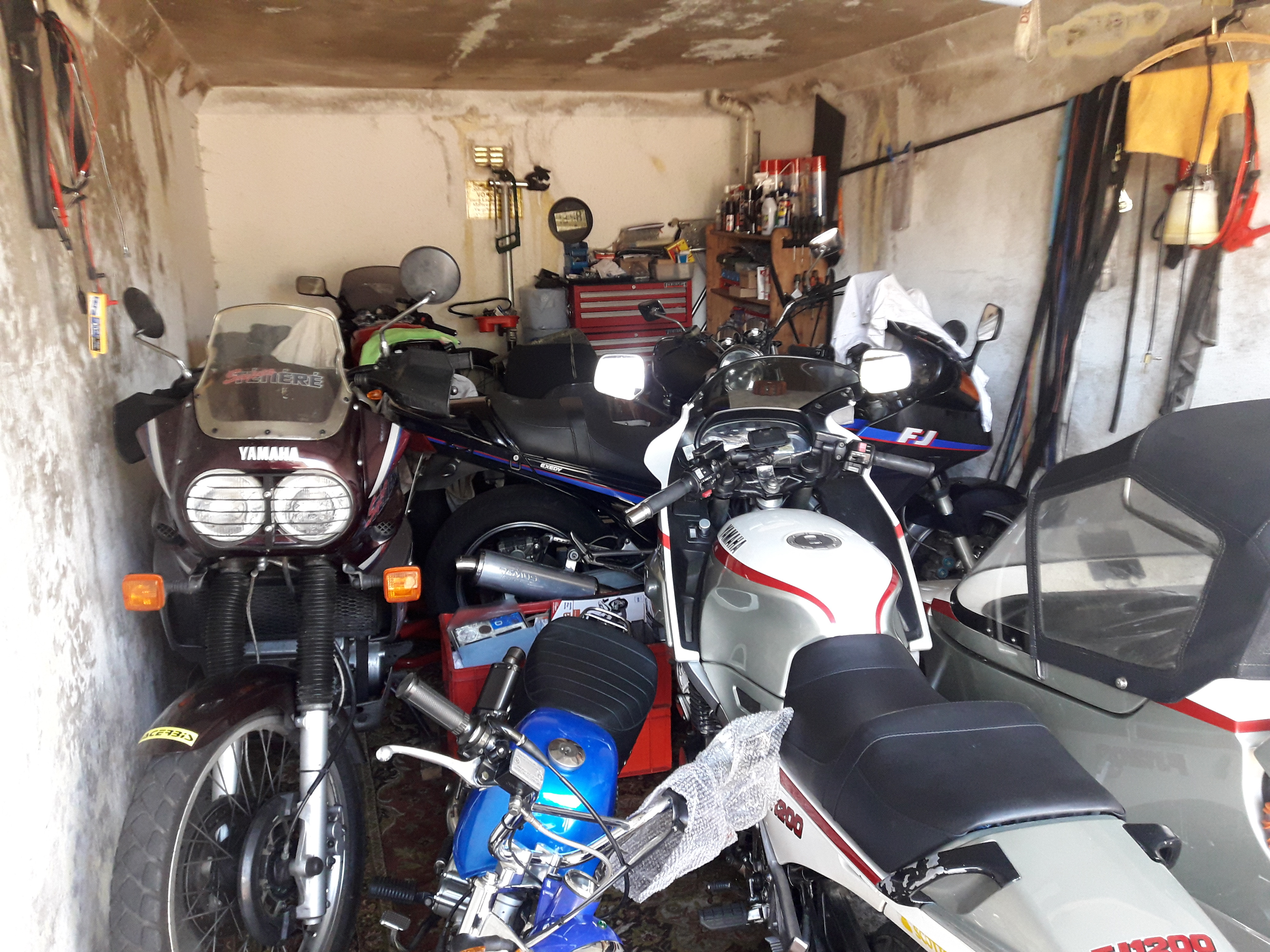 Die Garage mit den Ersatzteilen und den Moppedbaustellen sieht noch viel schlimmer aus