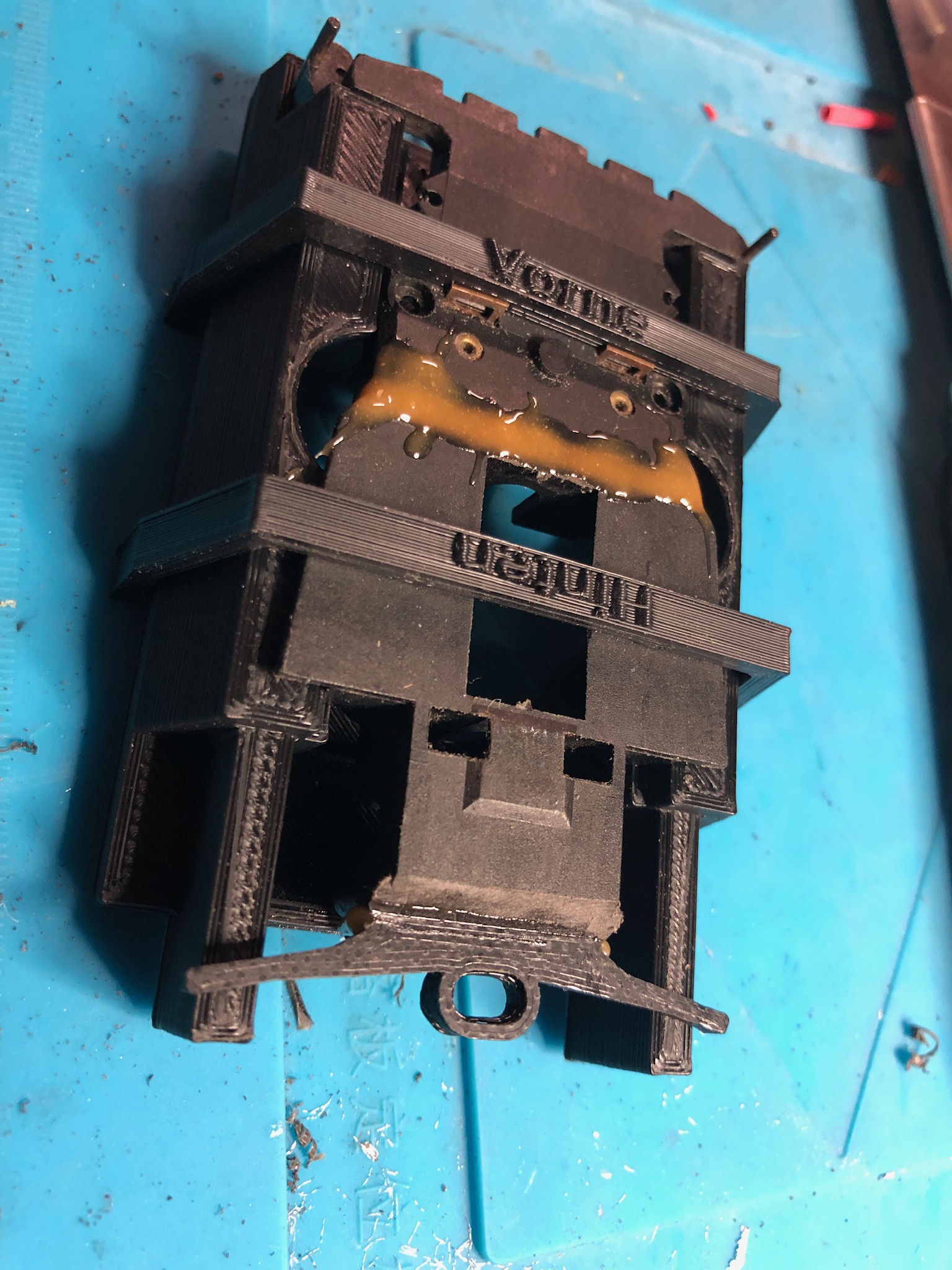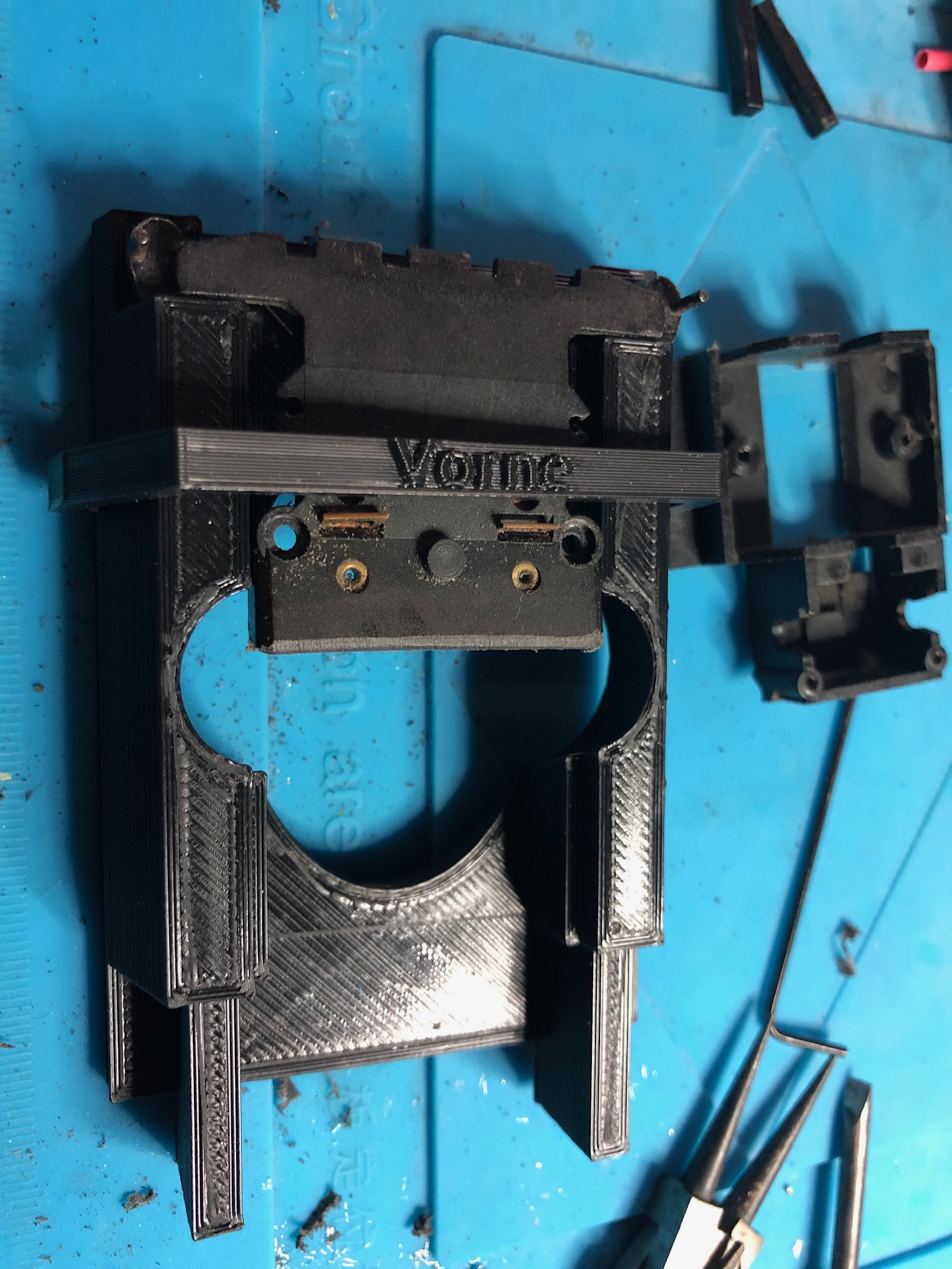 Ziel des ganzen war meine schon vorhandene so Vorrichtung zu optimieren, dass sie variabel in der Längeneinstellung ist und die beiden Hälften auch sicher und vor allem passgenau fixiert, um in Ruhe kleben zu können und gleichzeitig auch die Positionierung des 3D gedruckten neuen Abstandshalters gewährleistet ...