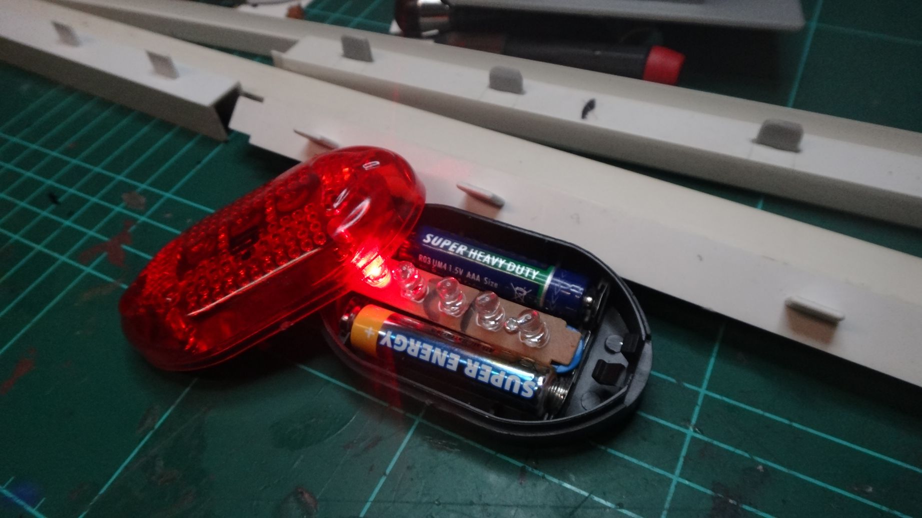Mein Sohn hat auf einer Weihnachts-Tombola ein Fahrrad-Rücklicht geschossen.