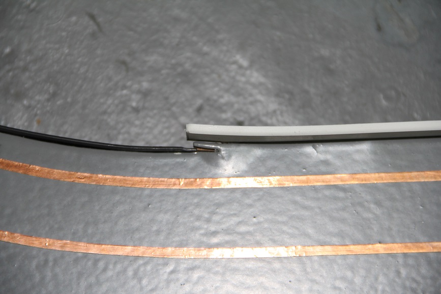 An den Schnittstellenbereichen habe ich unten in der Schiene kleine Nuten mit dem Stechbeitel für die Kabel ausgeschält und die Bänder verlötet. Das Löten der Tiffanybänder ging extrem gut, zum Verbinden nutz ich Platinen Stecker, die sieht man später auf den Bildern noch