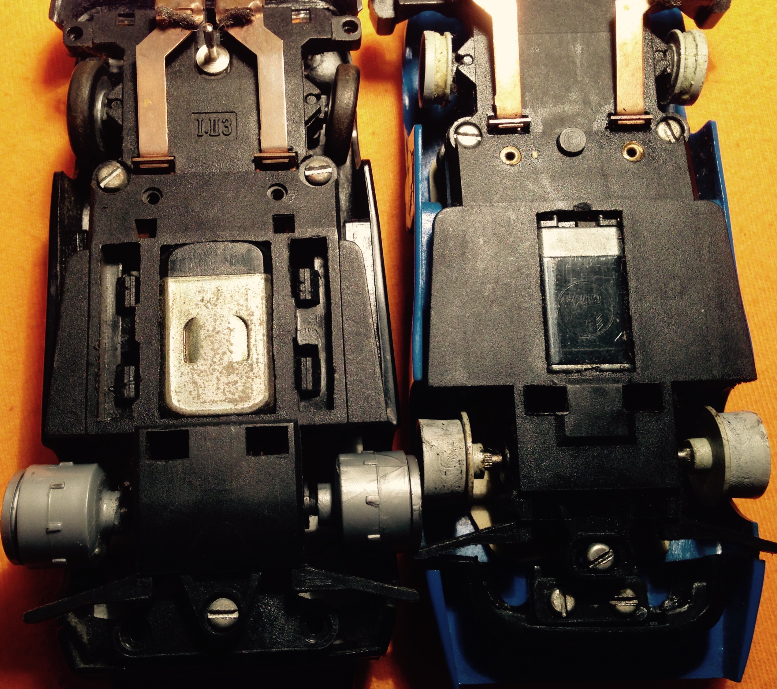 Also die Achse ist definitiv falsch, das Auto wird mit dieser Achse auch nie richtig laufen. Da gehört eine V1-Achse rein (schmale konische oder zylindrische Felgen). Ich lehne mich jetzt mal weit aus dem Fenster und behaupte, dass die von einem Spielzeugladen als Ersatzteil verkauft wurde, als es schon keine V1-Ersatzteile mehr gab.