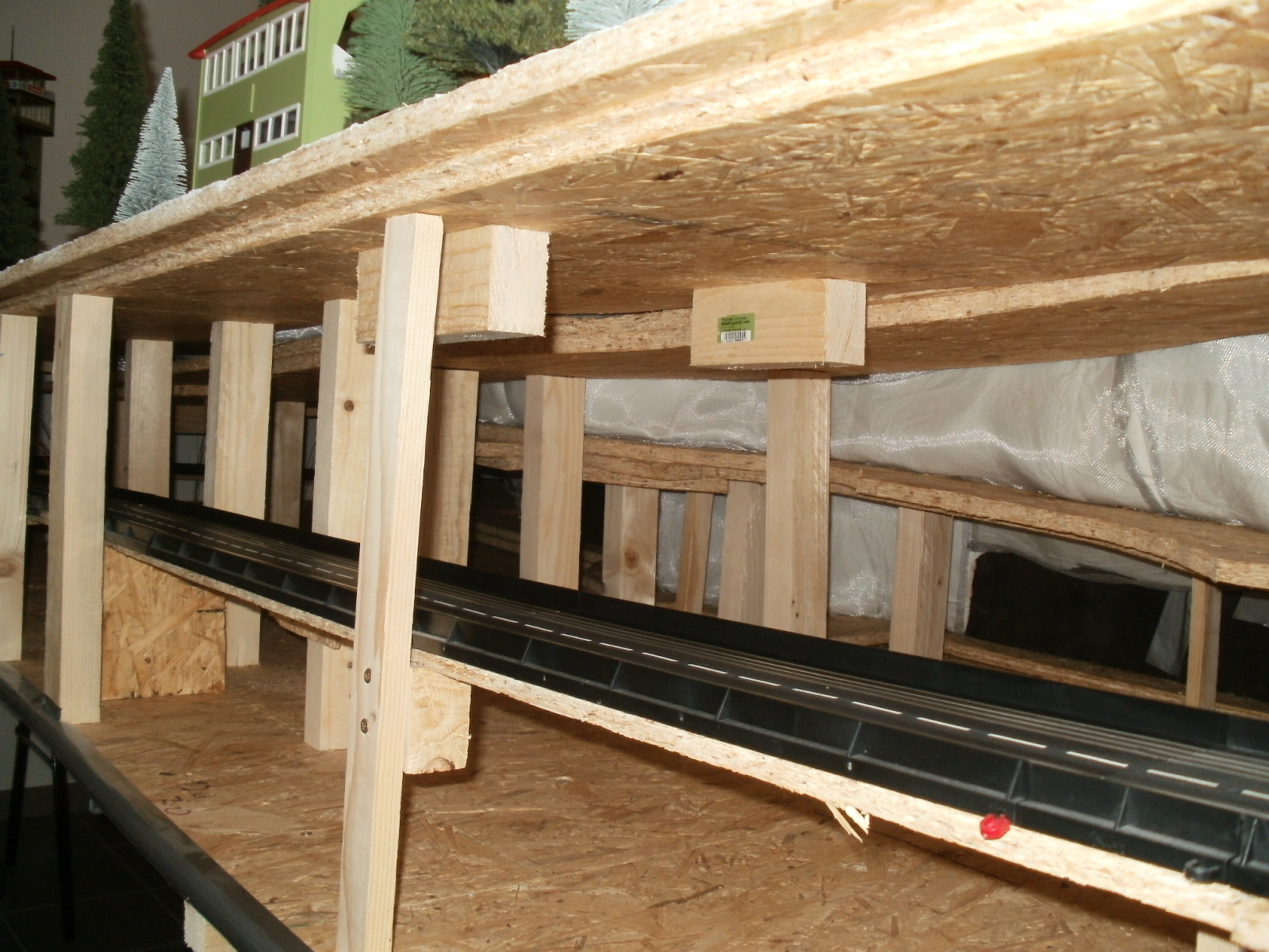 Hab die OSB Platten passend geschnitten und dann mit der Grundplatte verschraubt, den Spalt zwischen der Platte und der Fahrbahn hab ich mit Silikon aufgefüllt.