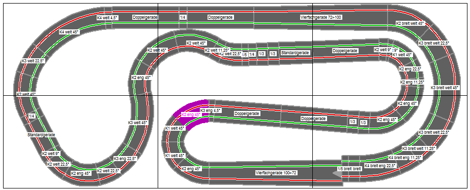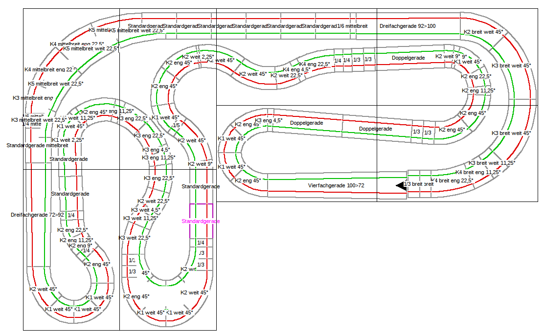 Mehr Geraden für Spurwechsel, und links oben könnte man wieder die Kurve mit zwei Innenführungen bauen... hmmmm
