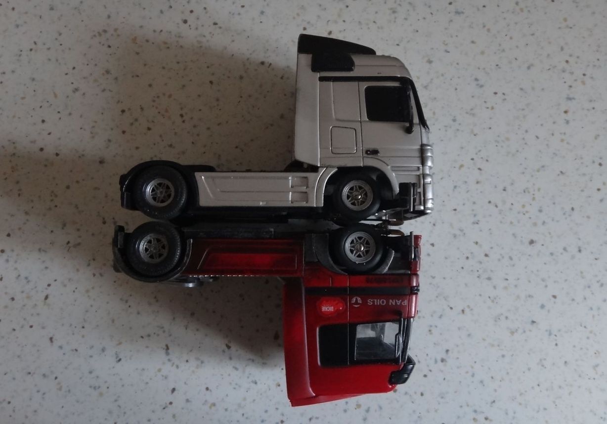 ...hann mol so'n neier Dickie Truck umgebaut...das rote da...das Teil mit'm ehemaligen kippbaren Führerhaus...passt aach gudd