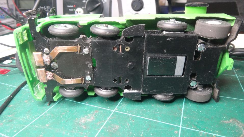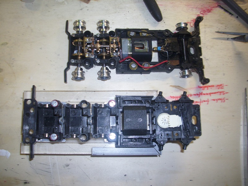 Die Doppeltraktion ist ohnehin sehr materialintensiv, da man quasi einen zweiten Hinterwagen benötigt.(wg. 2ter Ritzelkäfig, Hinterachse und Chassieteil. Bei der V1 habe ich alledings noch zwei weitere Hindistarrgetriebe verwendet...