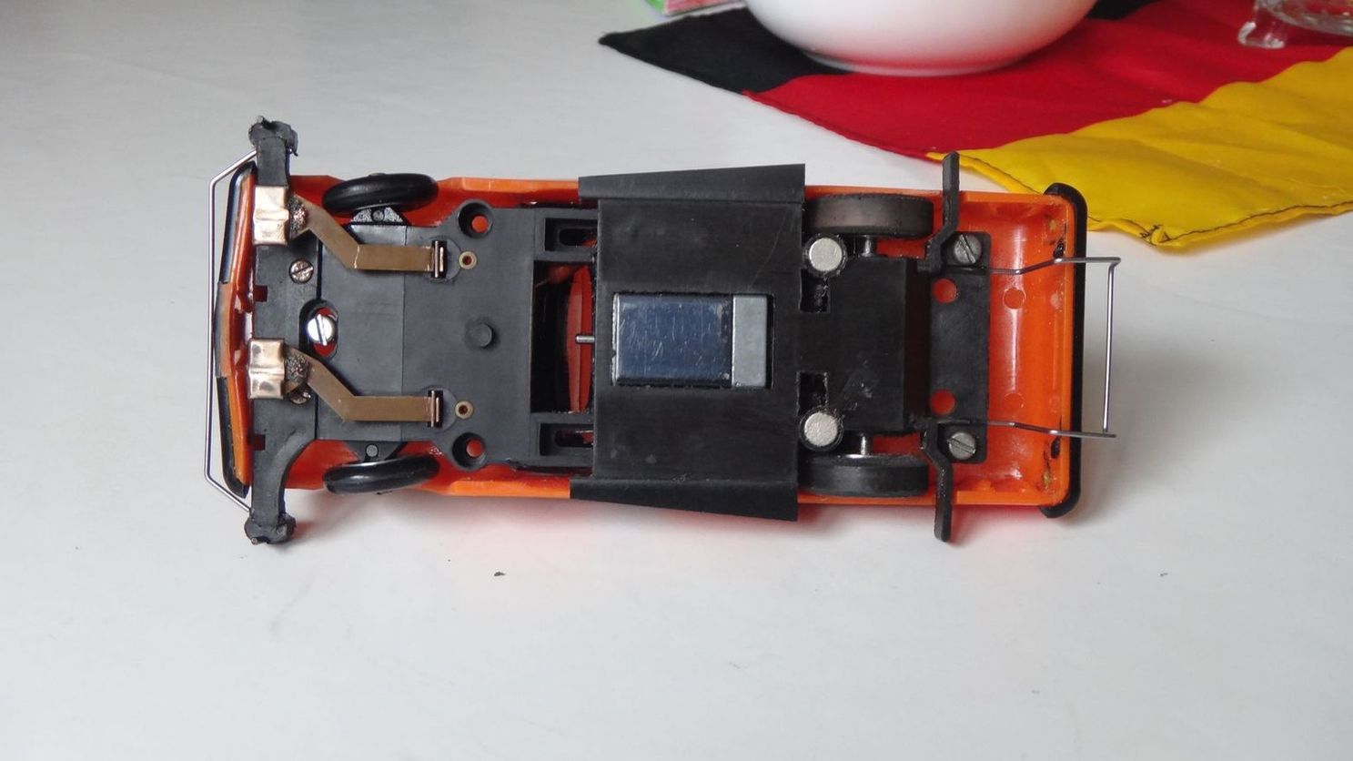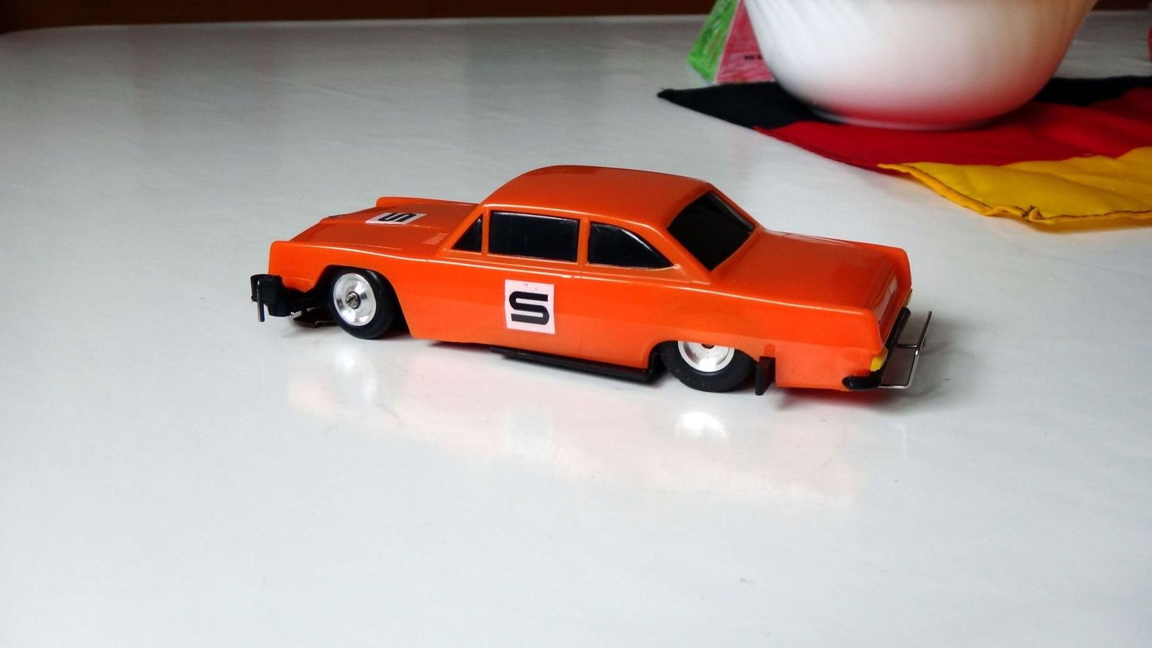 Hab draus oinen Speed-Hindi gebosselt...awa is koi Selbstlenker...oder doch ? Was vorher einem Opel Rekord ähnlich sah...is weg..die neu gefutschelten vorderen Radläufe machen fast einen AMI draus. wassenalles: 6mm Neodym, SSF, Wendefelgen vorne, Premiere für Jörg's neue hinteren Schmalspur-Felgen, Auffahrschutz hinten und vorne (1mm Stahldraht)und gekürzte Führungshaken. Diesmal keine Lenkbrücke mit Stange, sondern schmale Spur und kurze F.-Haken.