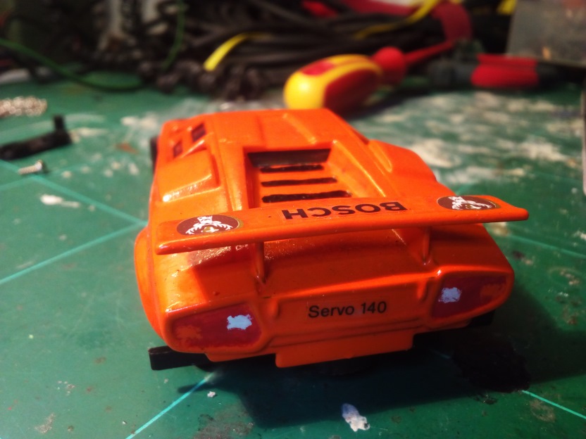 Auch ich habe den Ferrari 458 der CarreraGo auf ein normales Servochassis gesetzt.