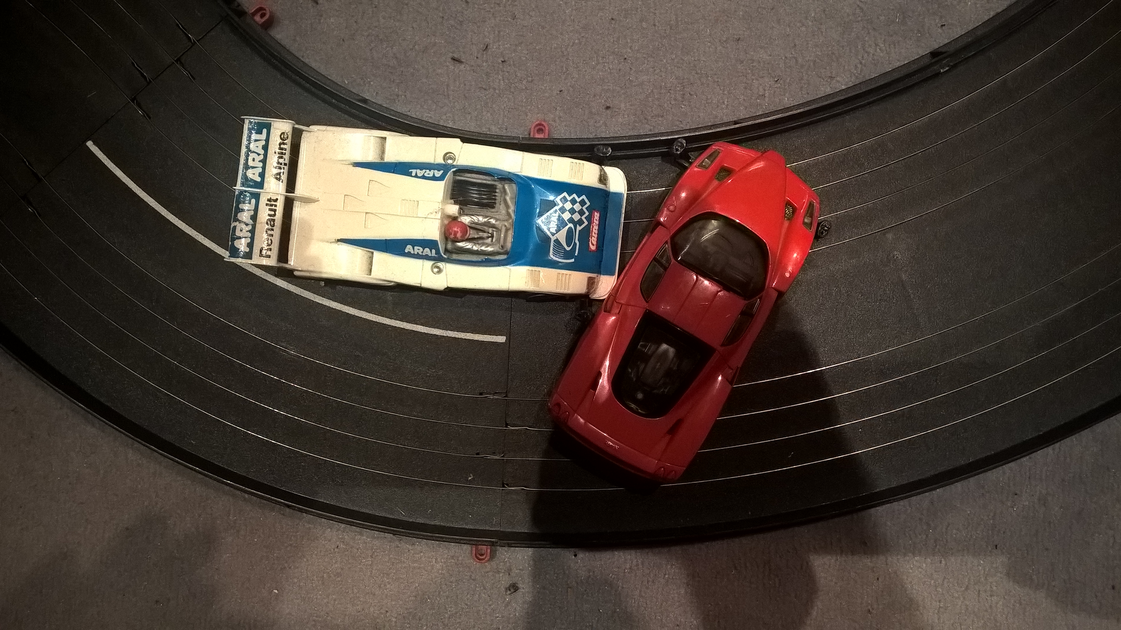 Ich wollte ja noch weiter Autos reparieren, aber Andi meinte, dann würden wir die Bahn nie umbauen, weil ich jeden Dienstag genausoviel zu Schrott fahre wie ich an einem Abend reparieren kann.