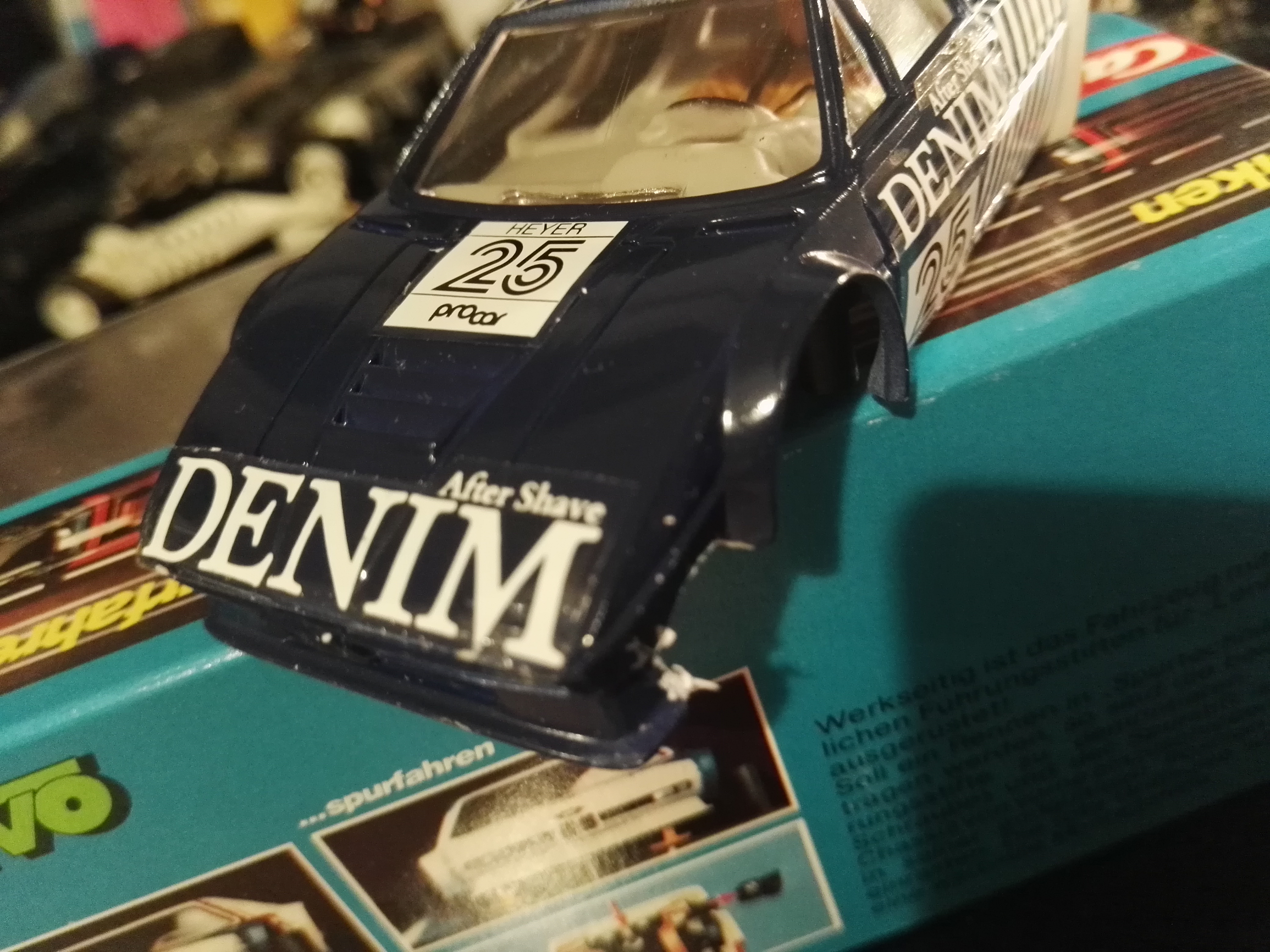 Ich habe einen unbespielten in OVP, schon mit den Aufklebern und auf Mabuchichassis mit großem Gewicht. Er wurde werksseitig relativ schlampig für Mabuchi passend gemacht. Möglicherweise von 1981, wenn das Preisschild stimmt.