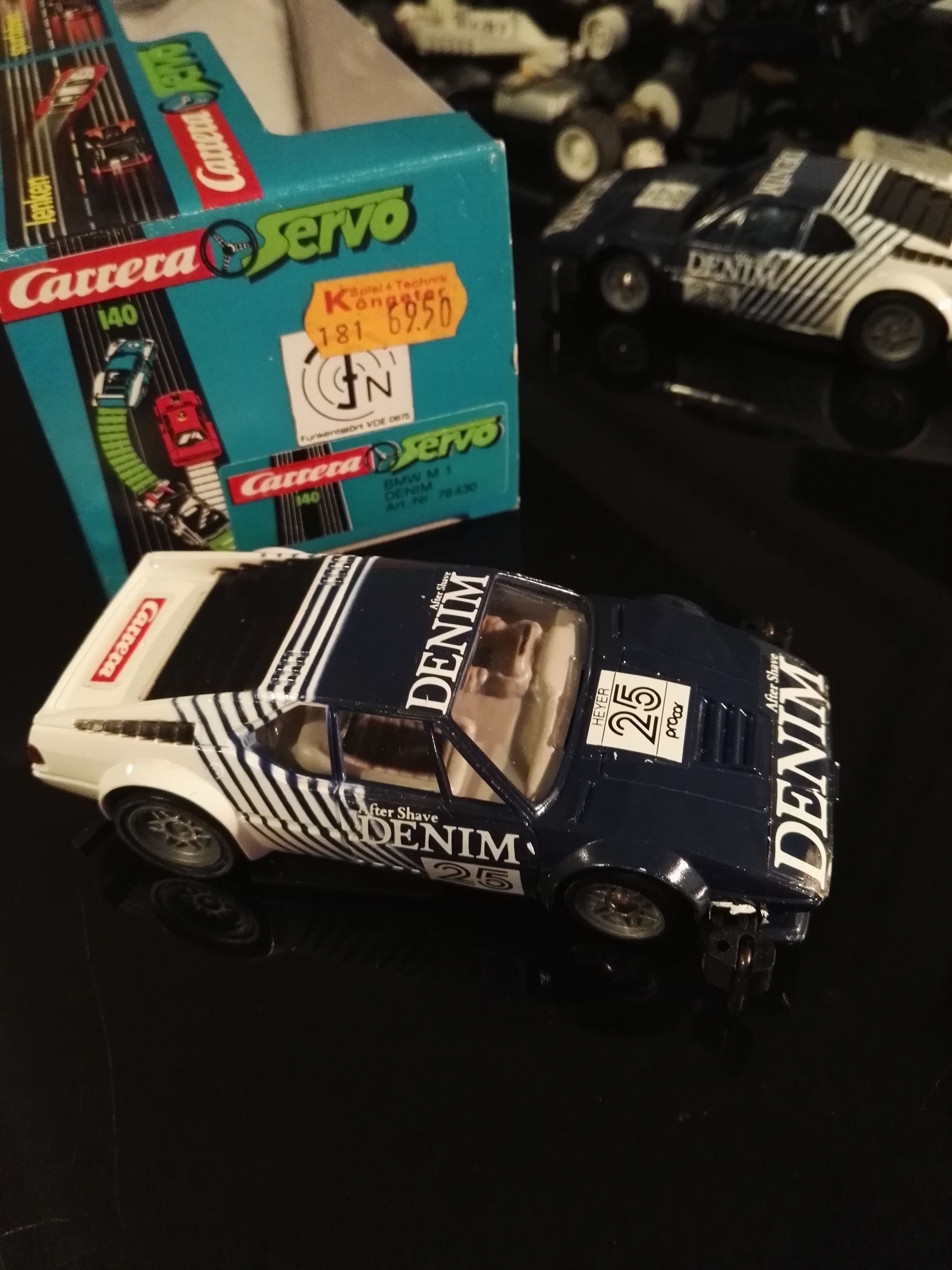 Ich habe einen unbespielten in OVP, schon mit den Aufklebern und auf Mabuchichassis mit großem Gewicht. Er wurde werksseitig relativ schlampig für Mabuchi passend gemacht. Möglicherweise von 1981, wenn das Preisschild stimmt.