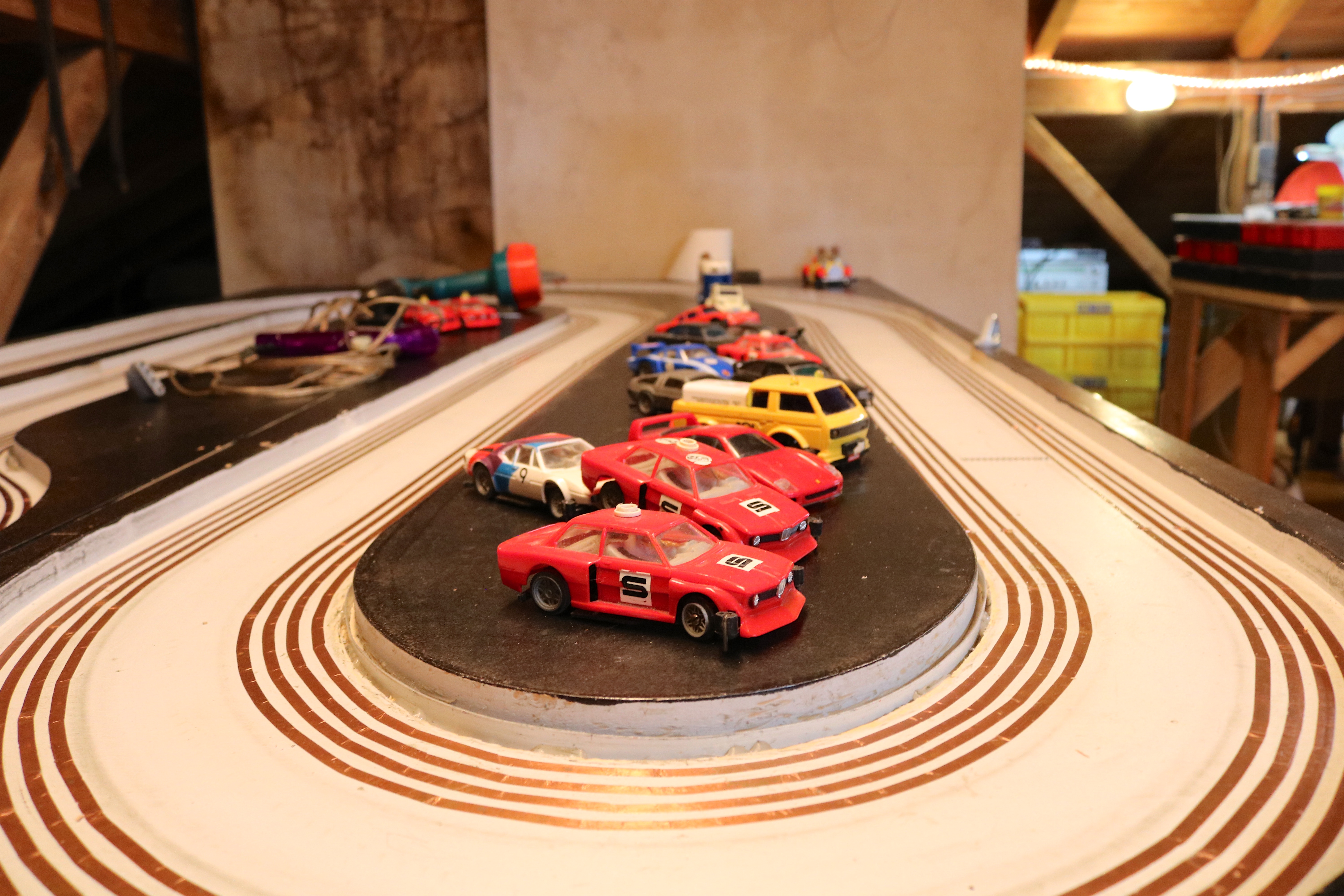 .... Allerdings lassen sich die engen Innenkurven noch nicht so flüssig fahren wie es sein könnte. Auch haben wir im Moment noch den "kleinen" Trafo (gebrückt) Stufe 2-2 an der Bahn. Weis jetzt gerade nicht, welche Spannung da ansteht. Auf jeden Fall noch keine 20V(?).