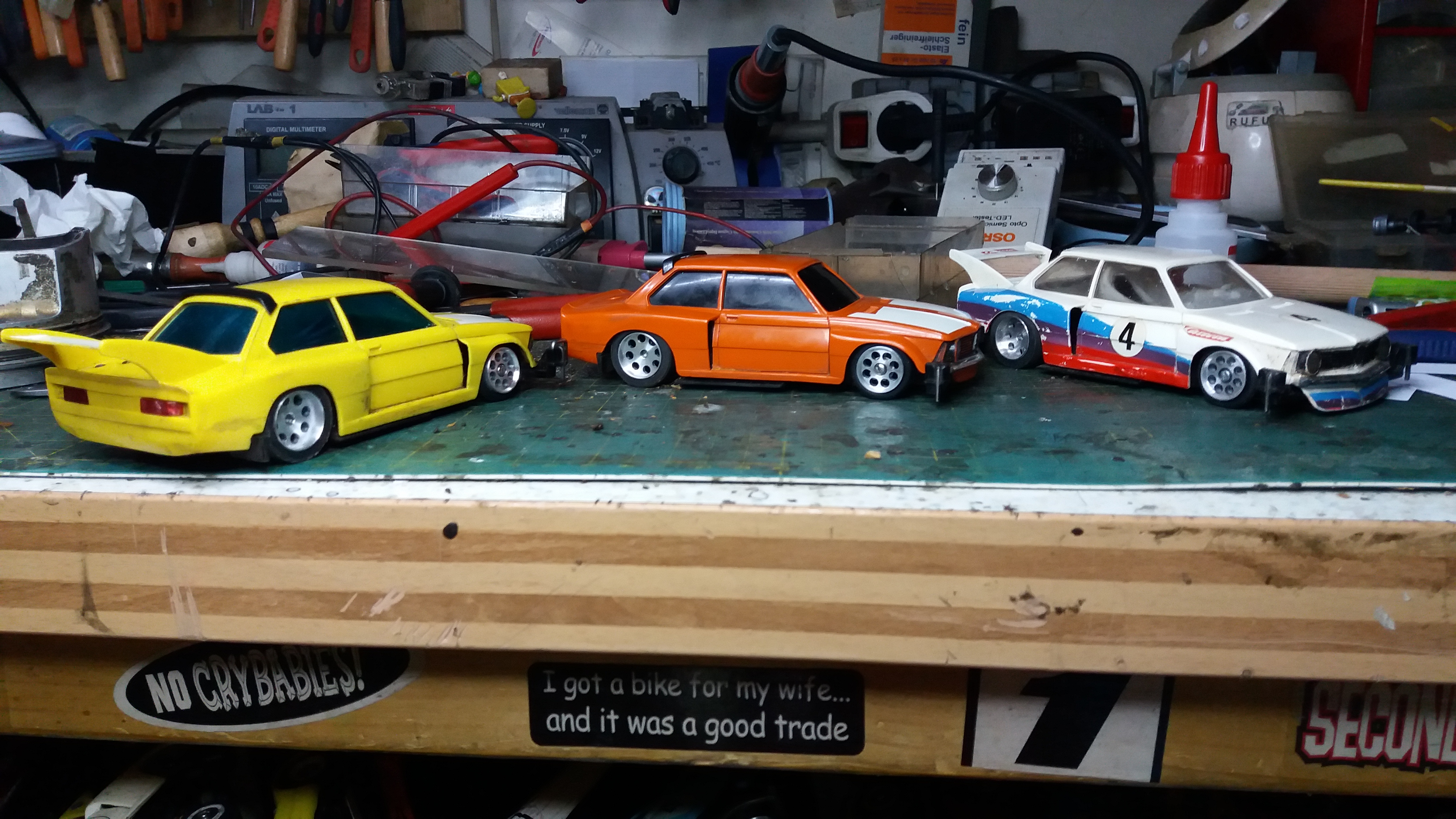 ...der testet gerade mit Klebeband fixierte 13a auf großen Felgen