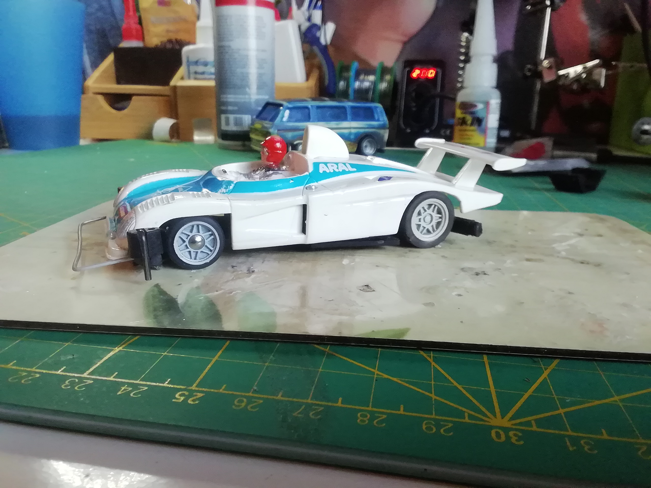 Habe die Chassis-Frontteile mit festen F.Haken (weil kleiner) und mit Wackelgewicht genommen...das hilft wenn die Karosse wenig wackeln kann.
