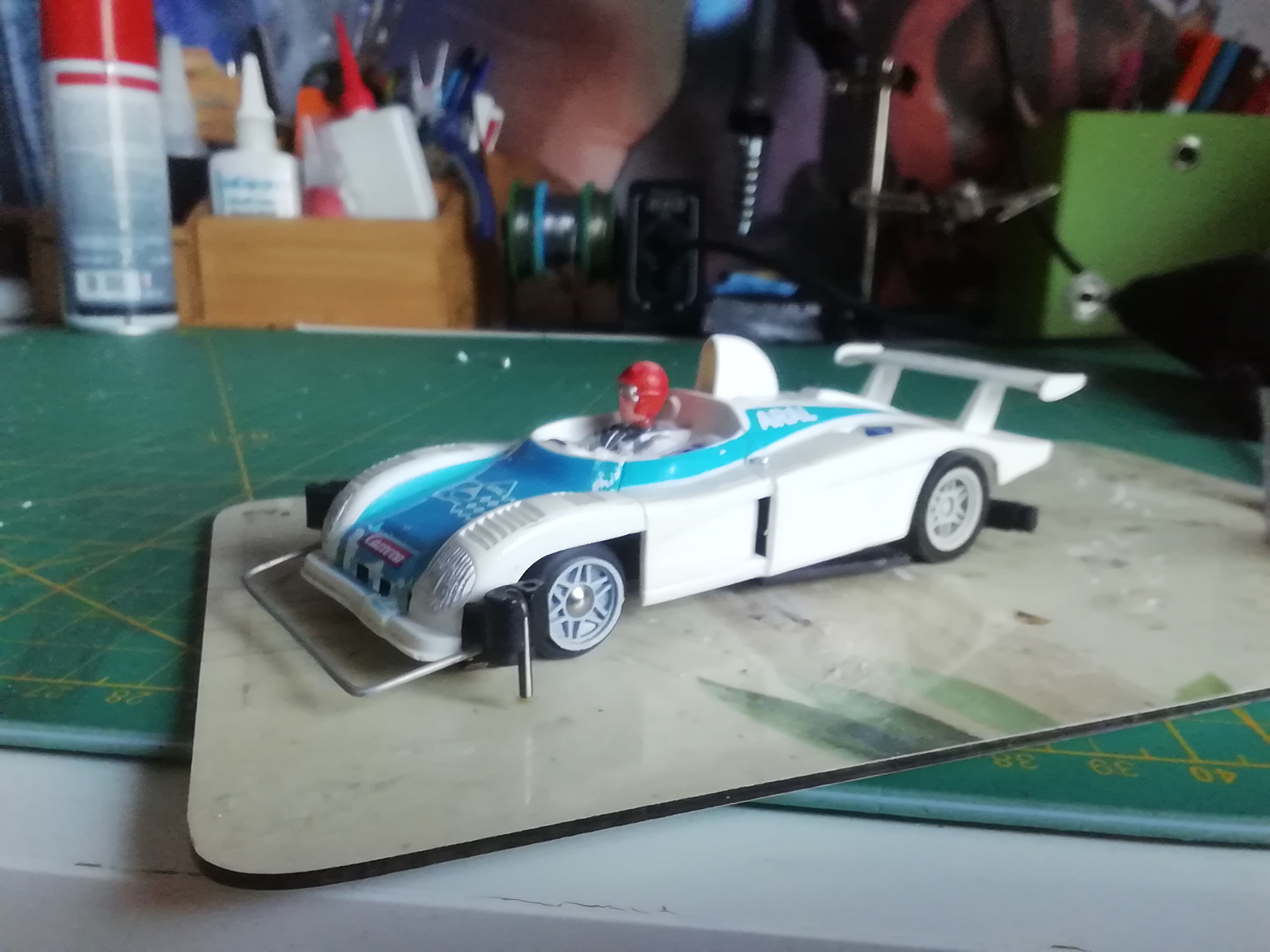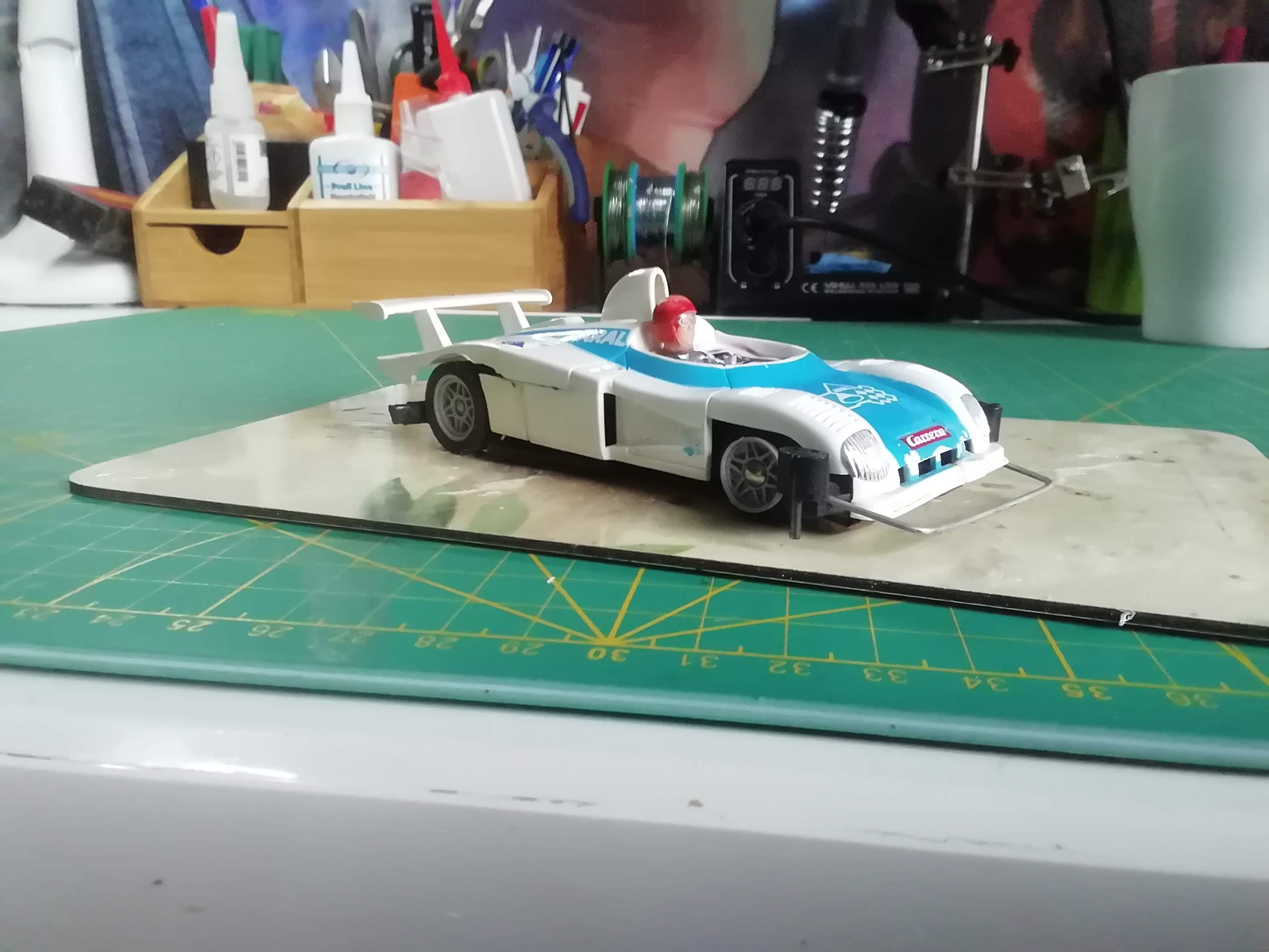 Hab diese Wochenende meinen vierten und vorerst letzten "Legends of racing" fertig gemacht. Extrem schmale Karosse. Da musste das Chassis leiden...