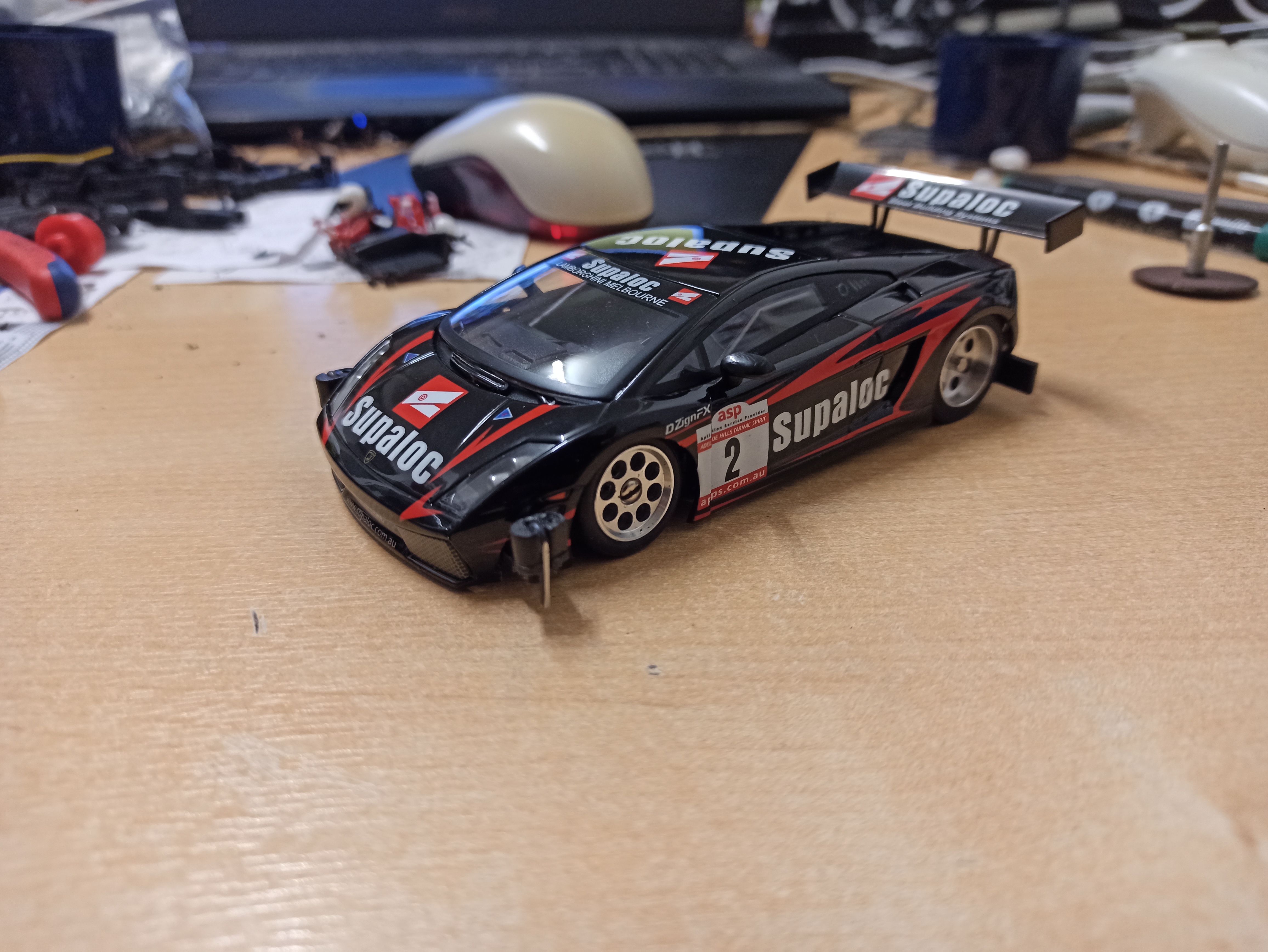der Gallardo gefällt mir...sieht gut passend aus, für's 132er Chassis...auch ohne Spoiler goil...finden und haben wollen :thumbsup: ...bald is Slotmania :tongue-squint: